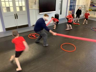 This week, in our Movement Lab sessions, Year 2 had lots of fun playing ‘Blindfolded Jellyfish’. One child (or Mr Speed!) was blindfolded and became a jellyfish with long tentacles. In teams, children had to think about how to run, jump and dodge the stinging tentacles of the jellyfish. If they managed to pass without being stung, they collected a piece of treasure to take back to their group. The group with the most treasure won!