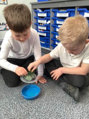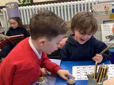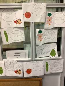 The Evil Pea appeared in Reception on Monday, having captured Fred Frog and left some mean clues. Everyone has been hard at work writing and plotting ways to capture Evil Pea - including ladders, parachutes, aeroplanes, trampolines and Spiderman powers. The classrooms are covered in messages both to the Evil Pea and Supertato's characters.