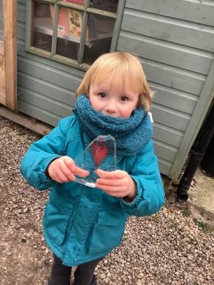 Meanwhile, in the garden, the cold weather prompted an ice experiment. We talked about minus temperatures below 0 and why things freeze/melt.