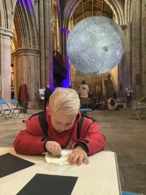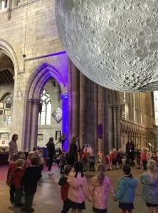 Reception had a wonderful lunar trip to the Abbey today to visit the Museum of the Moon. The Abbey staff asked children to share their thoughts about the moon. Some said it was a sphere and that it had craters, whilst others said they loved the moon!