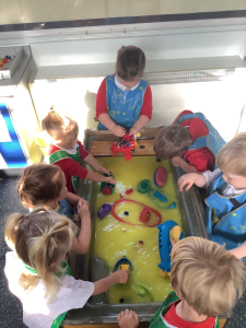 They are learning the different spaces in Nursery- Kipper room, Gruffalo room, Caterpillar room and the Nursery Courtyard. The children are getting to know where too find the things they need and then know where to put them away!