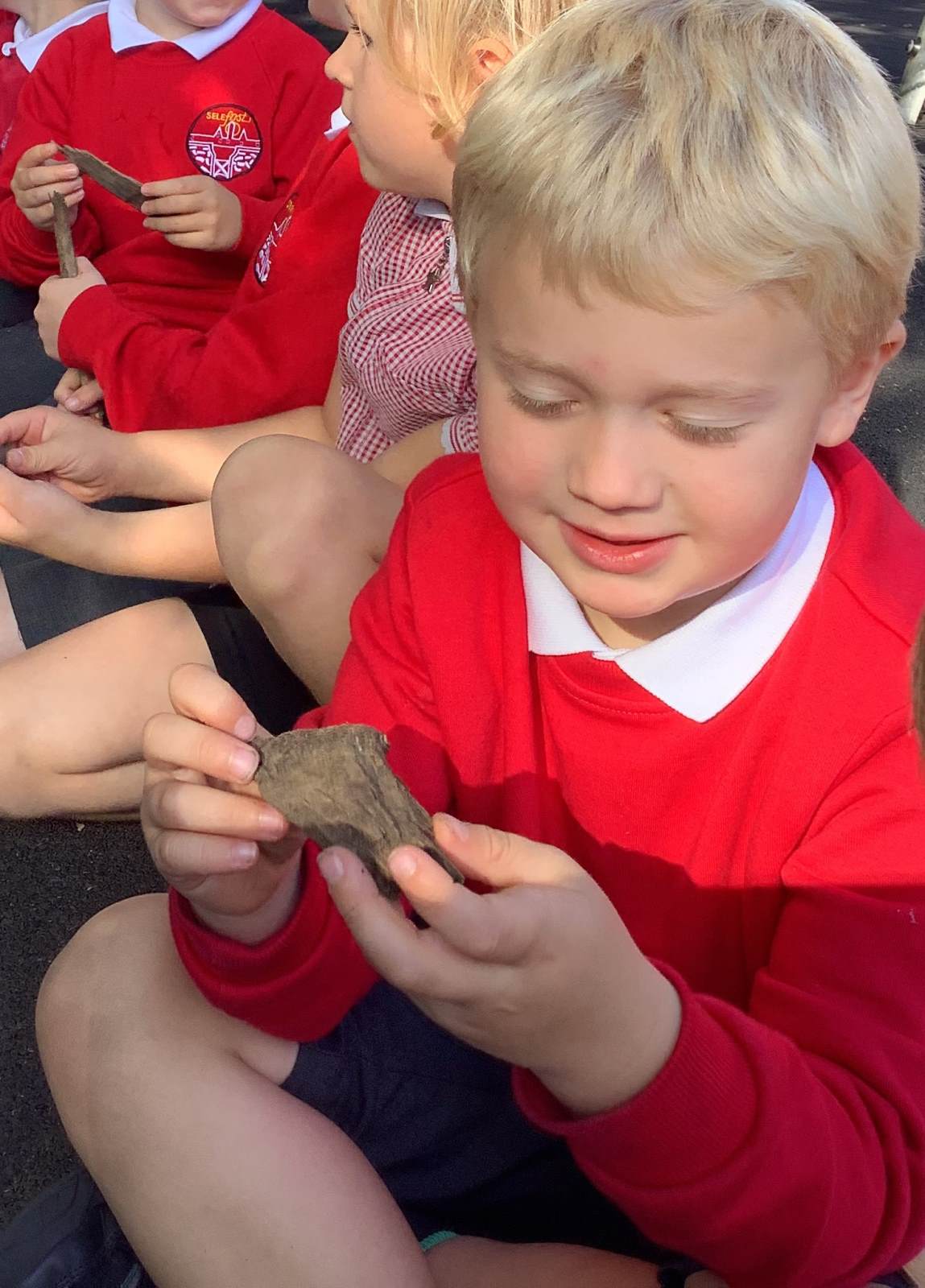 They then take another element of SPAG outside for a second activity. Recently we've been learning about adjectives and nouns while outdoors. In one lesson, children were given an adjective, for example 'hard', then they had to find things (nouns) that matched the word, that lived outside.