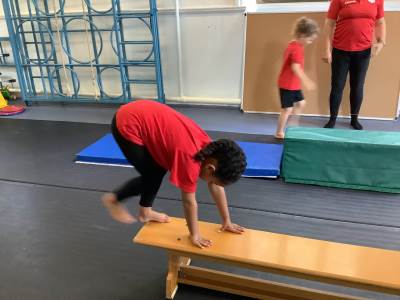 This half term, Reception are enjoying Gymnastics lessons with our specialist coach, Gayle Smith. This week they practised bunny hops, leaping over benches, jumping with two feet together, holding balances with upper arm strength and jumping into a squat position.