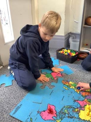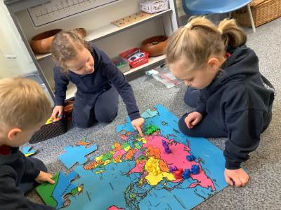 As Reception begin their topic, Maps Maps Maps, they began with the world! Children loved looking at world maps and globes, identifying animals in different continents and noticing land, sea and desert. They created suncatcher globes and wrote post-it notes about things and people they love on Earth.