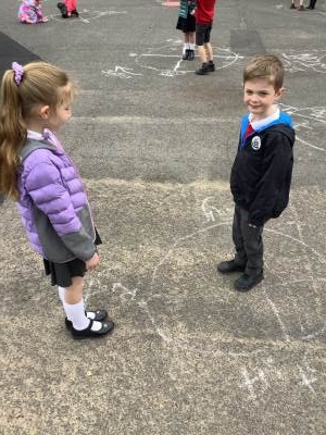 In the following lesson, children used chalk to draw a clock face. They identified quarters and instructed their partner to do quarter turns both, clockwise and anti-clockwise.
