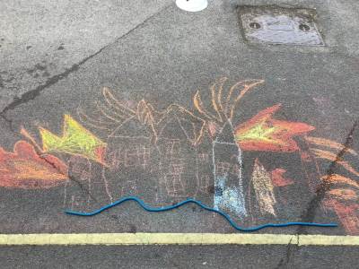 What a fantastic day Year 2 had for this year's Take One Picture Open Day. Y2 used chalk to recreate the streets of London engulfed with flames. They made their own Take One Picture souvenir of something they had learnt from this half term. By the end of the busy day, all children had visited the Art Studio where they sketched, created a shadow puppet and moulded their own clay gargoyle.