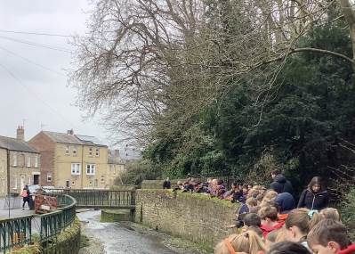 This week, Y4 visited Cockshaw Burn to measure the flow of the river. First they measured a distance of 10m. They then dropped a dog biscuit into the river and timed how long it took to float 10 metres downstream. Children also created a field sketch of the river and it's surroundings.