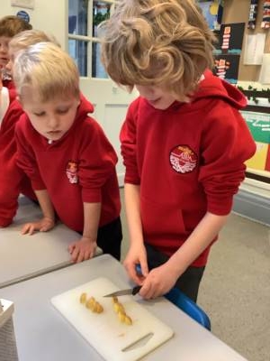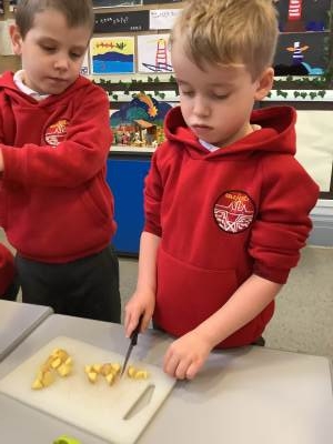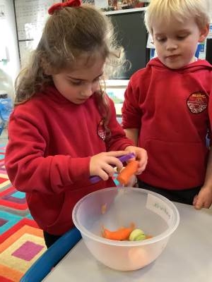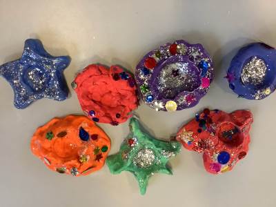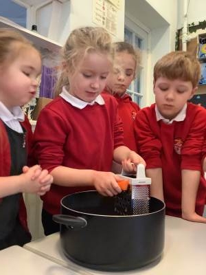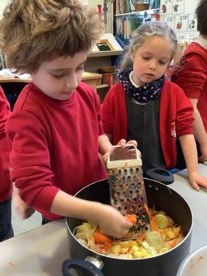 Children made and tasted vegetable soup to warm Little Bear before lighting their salt-dough lanterns to help him drift off to sleep.