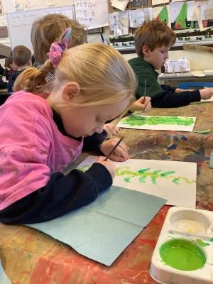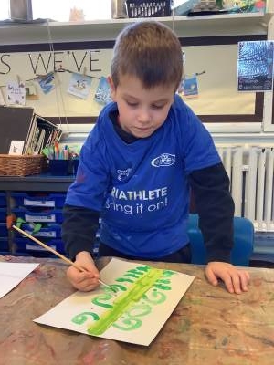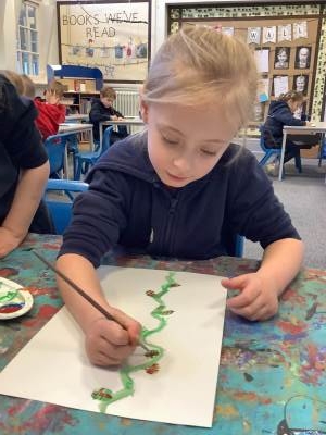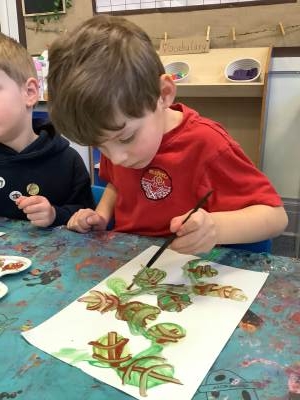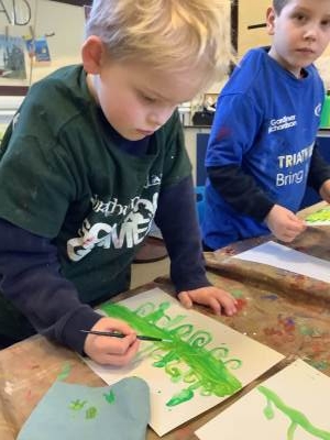 On the Creative table, children have been creating a collage of what they thought the giant visitor looked like, painted beanstalks and huge leaves to create a beanstalk fit for a giant!