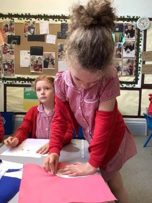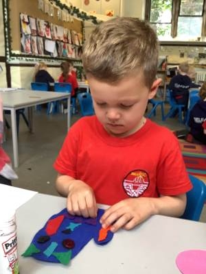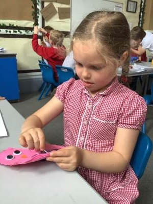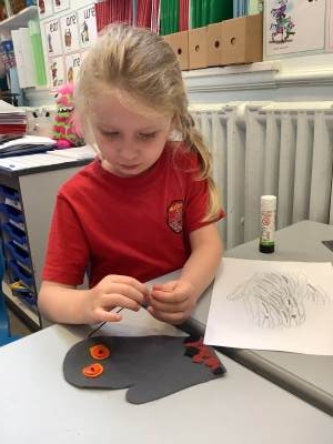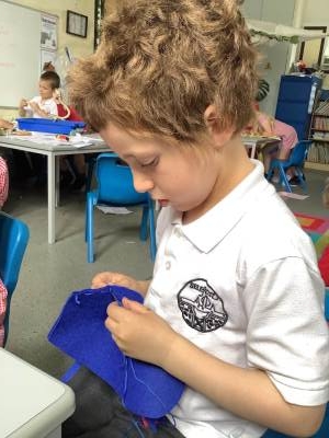 Year 1 have been busy designing and making their own hand puppets. This included sewing on button eyes and joining the fabric using a running stitch. Children were very proud of their work!