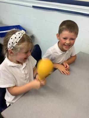 This week they listened to their partner clap a pattern and they responded using either a maraca or a half moon tambourine.