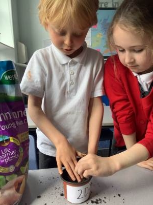 In Science this half term, children are exploring the life cycle of a plant. This week they planted their very own class sunflower.