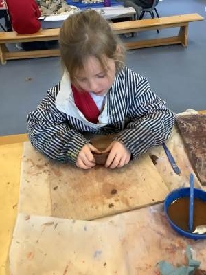 The children used clay to mould and shape their own boat which was accompanied by a flag they had created with their own choice of colours and shapes.