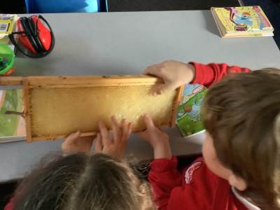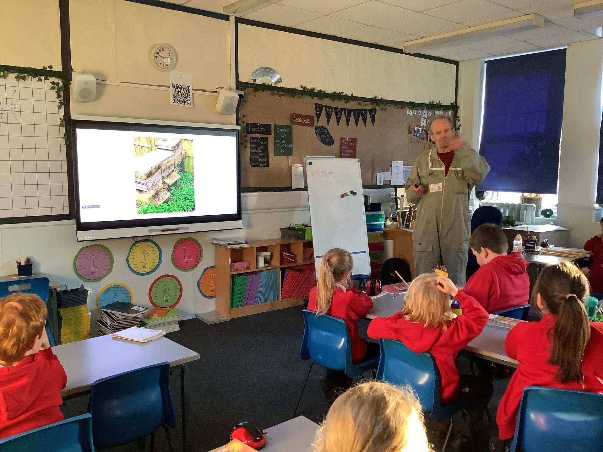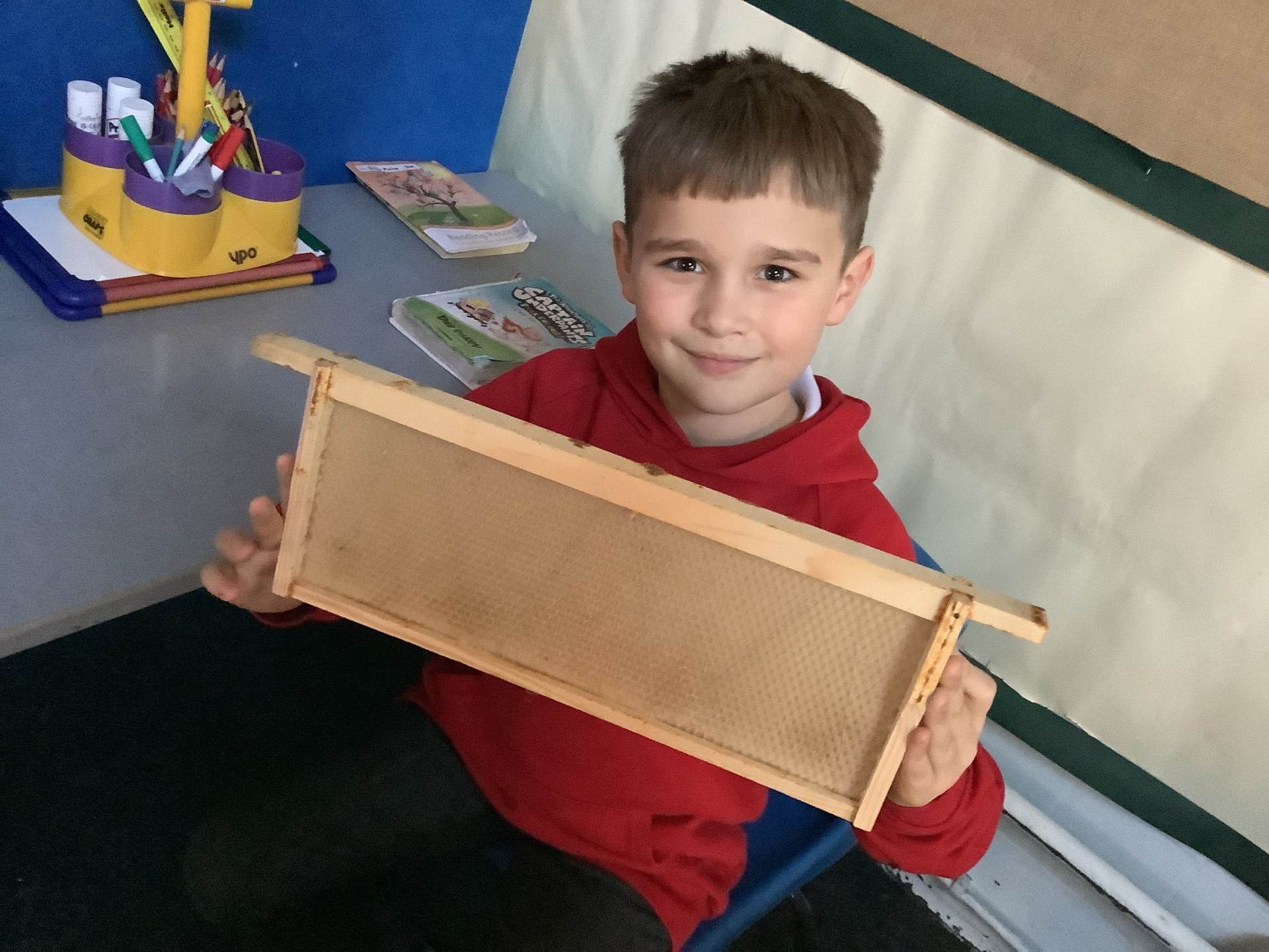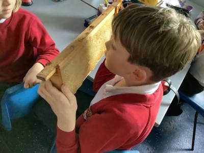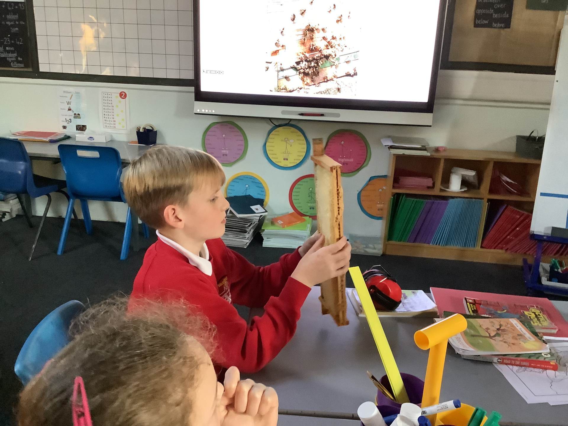 This week we had a visit from Mr Garlick who came to talk about bees! He told us lots of interesting facts about bees, including that there could be 70’000 in one hive! We’ve been looking at bees as the main pollinator in Geography and that a lot of food around the world is dependent on them.