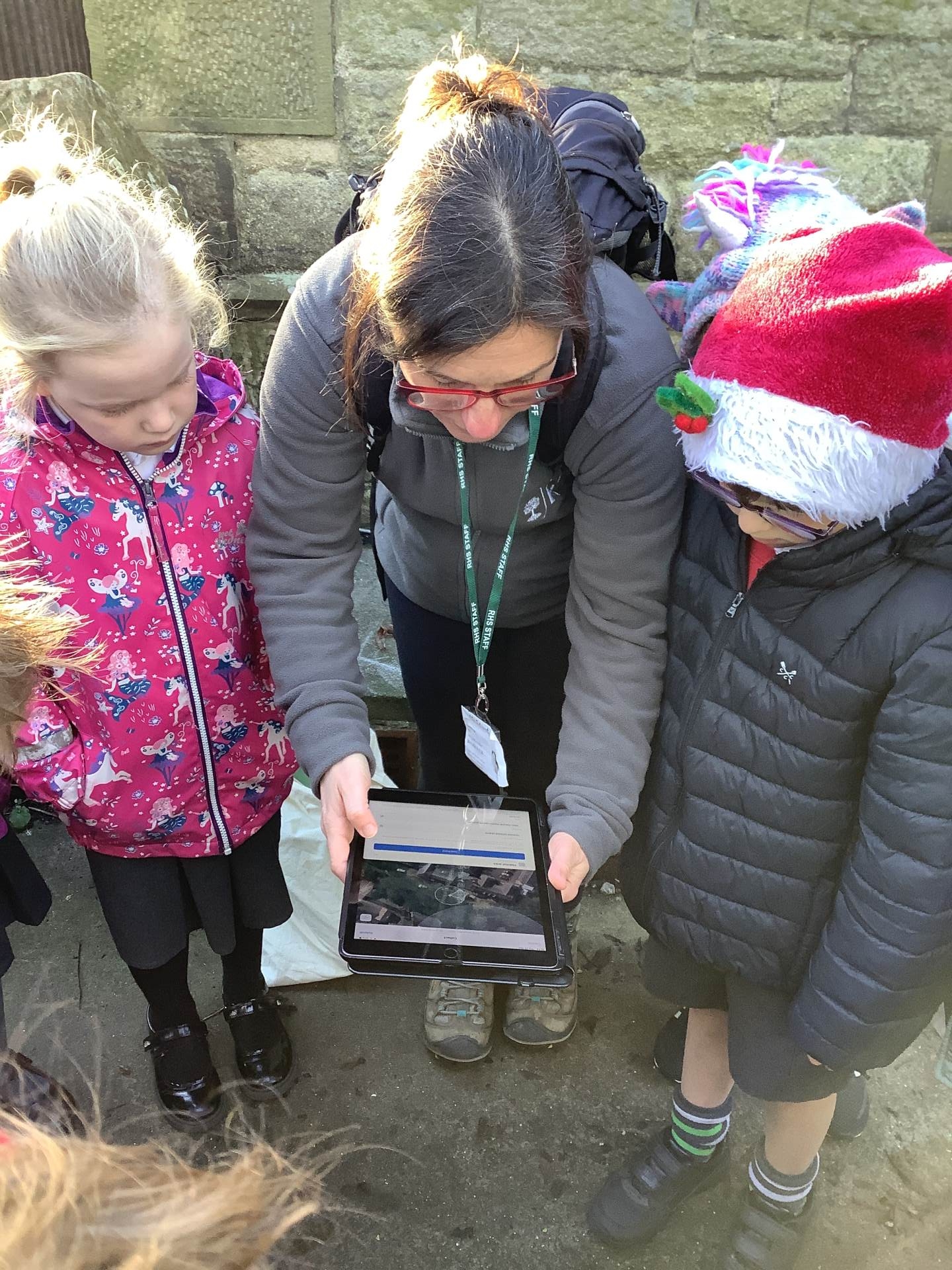 Using the Habitat Mapper on GIS Field Maps, children learnt how to identify and plot habitat areas in the garden. They mapped individual trees - logging whether they were deciduous or evergreen, broadleaf or coniferous. They tested permeable and non-permeable ground habitats by pouring water onto them.