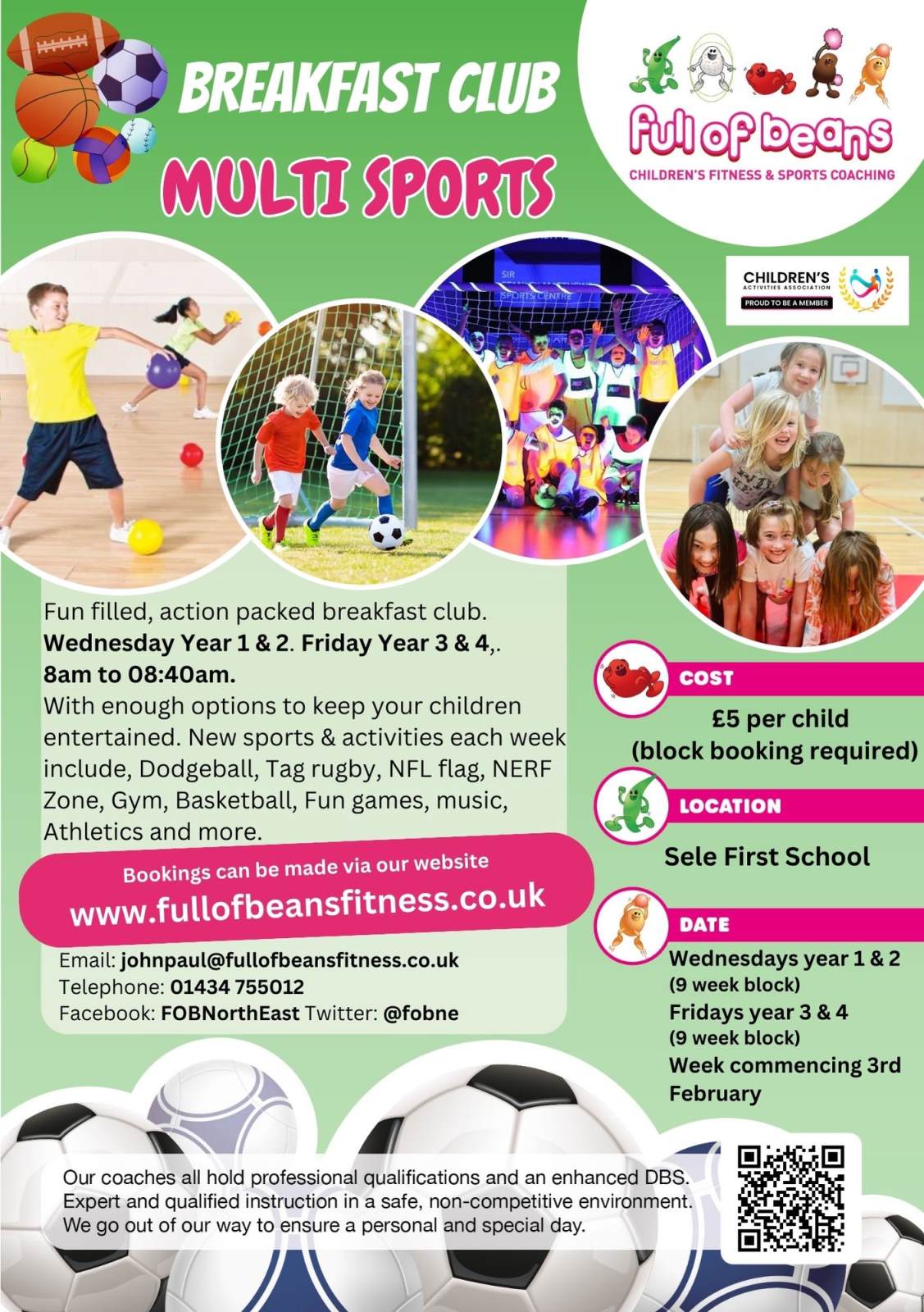 We still aim to offer a before school club on Wednesday (KS1) and Friday (KS2) through Full of Beans. This club would offer children the opportunity to try new sports, such as American Football, between 8am and school starting at 8:40.