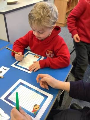 The Evil Pea appeared in Reception on Monday, having captured Fred Frog and left some mean clues. Everyone has been hard at work writing and plotting ways to capture Evil Pea - including ladders, parachutes, aeroplanes, trampolines and Spiderman powers. The classrooms are covered in messages both to the Evil Pea and Supertato's characters.