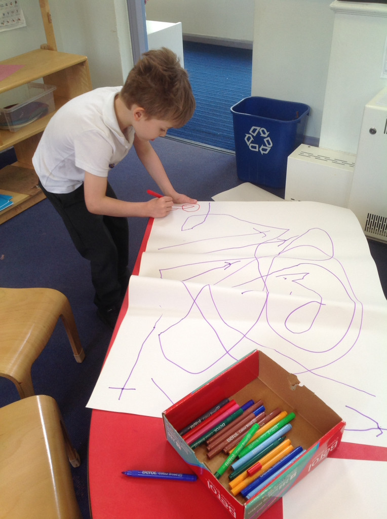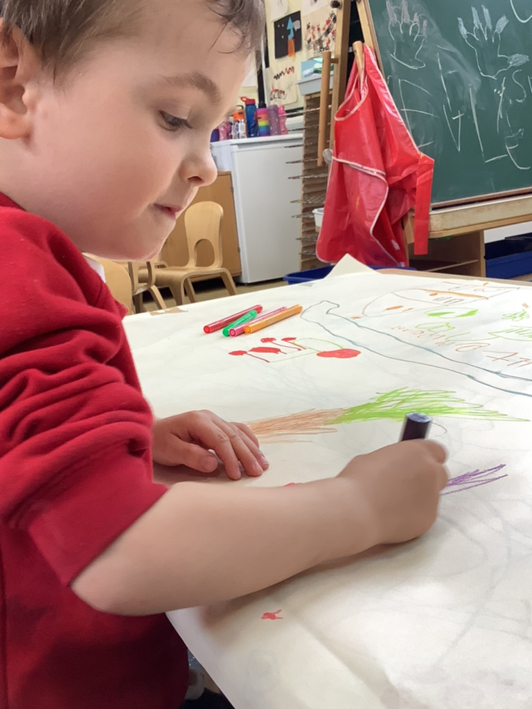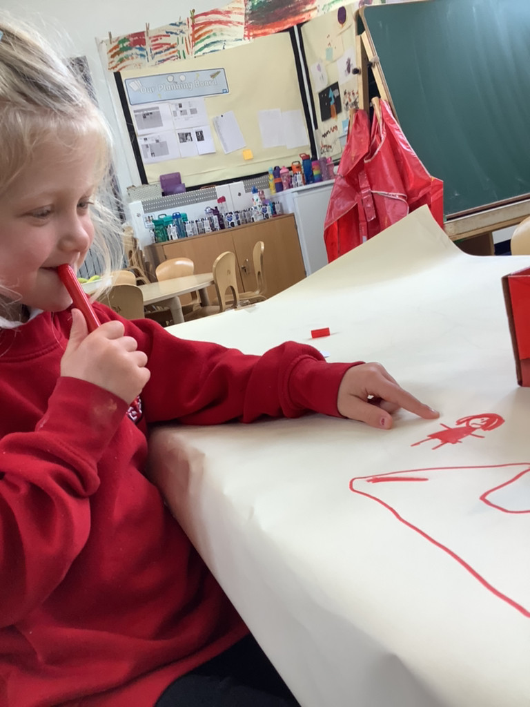 We have had a 'big' drawing table out this week, where the children draw pictures of the characters from the story. It led to some amazing drawings and conversations. The children are working hard to use an effective pencil grip.