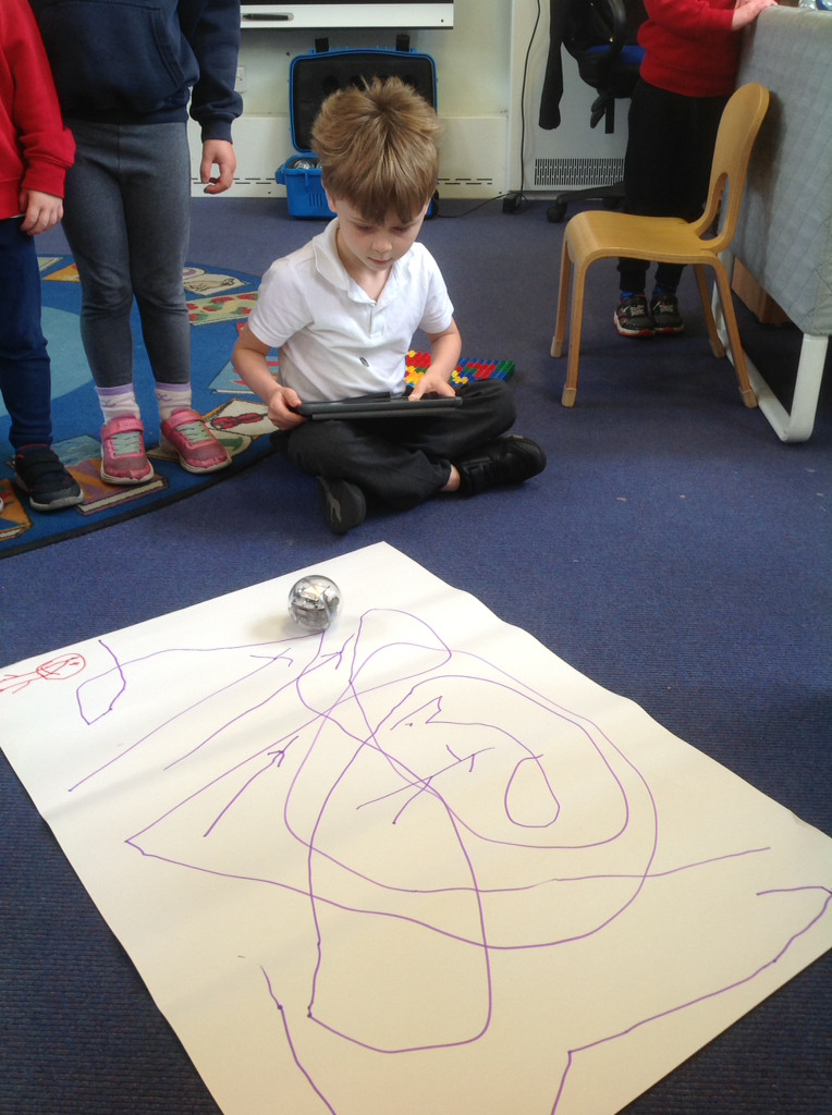 The children have drawn their own maps of the wood and used the spheros to navigate them through the woods. The children showed concentration to make the sphero move in the direction they wanted it to.