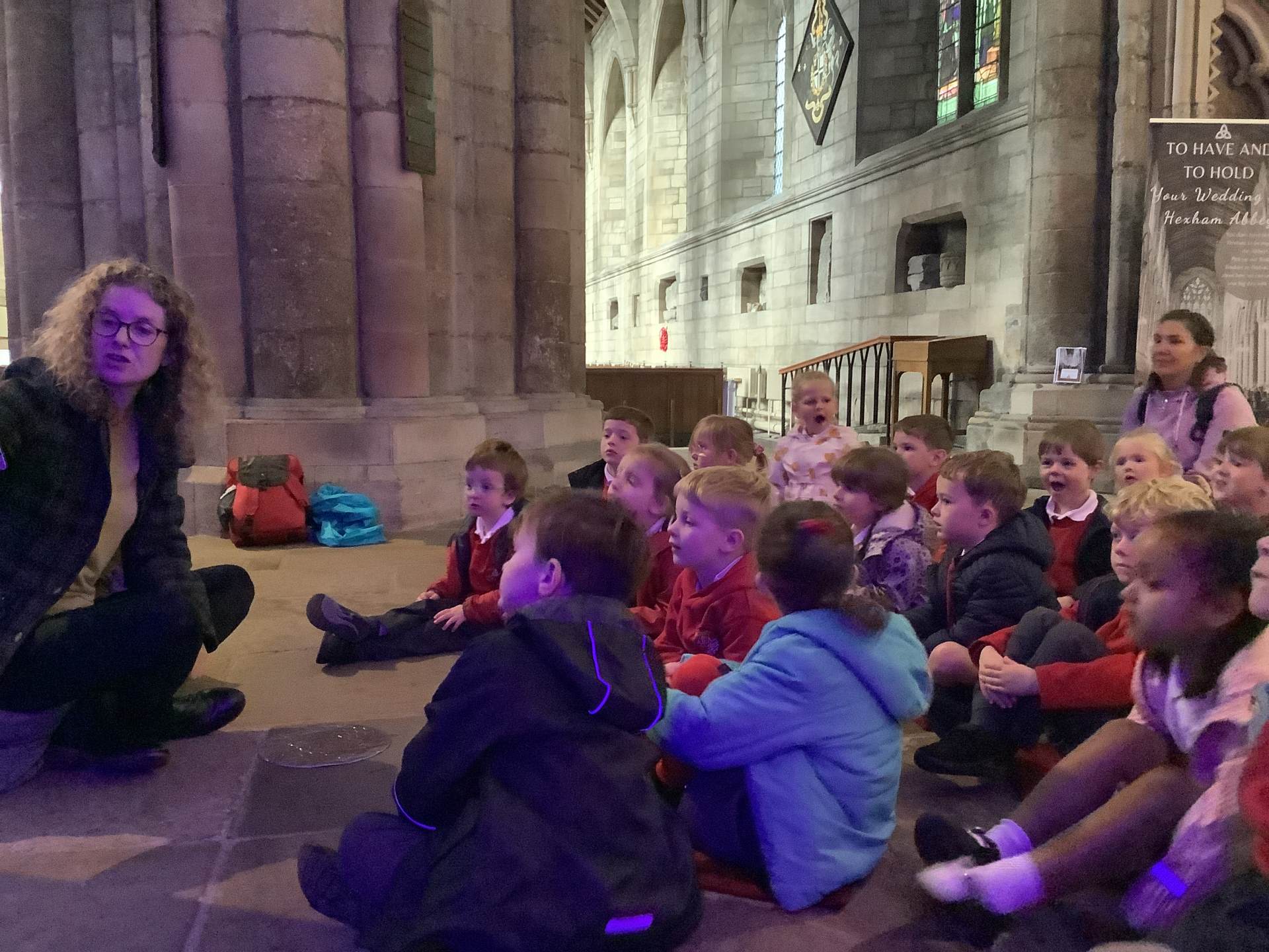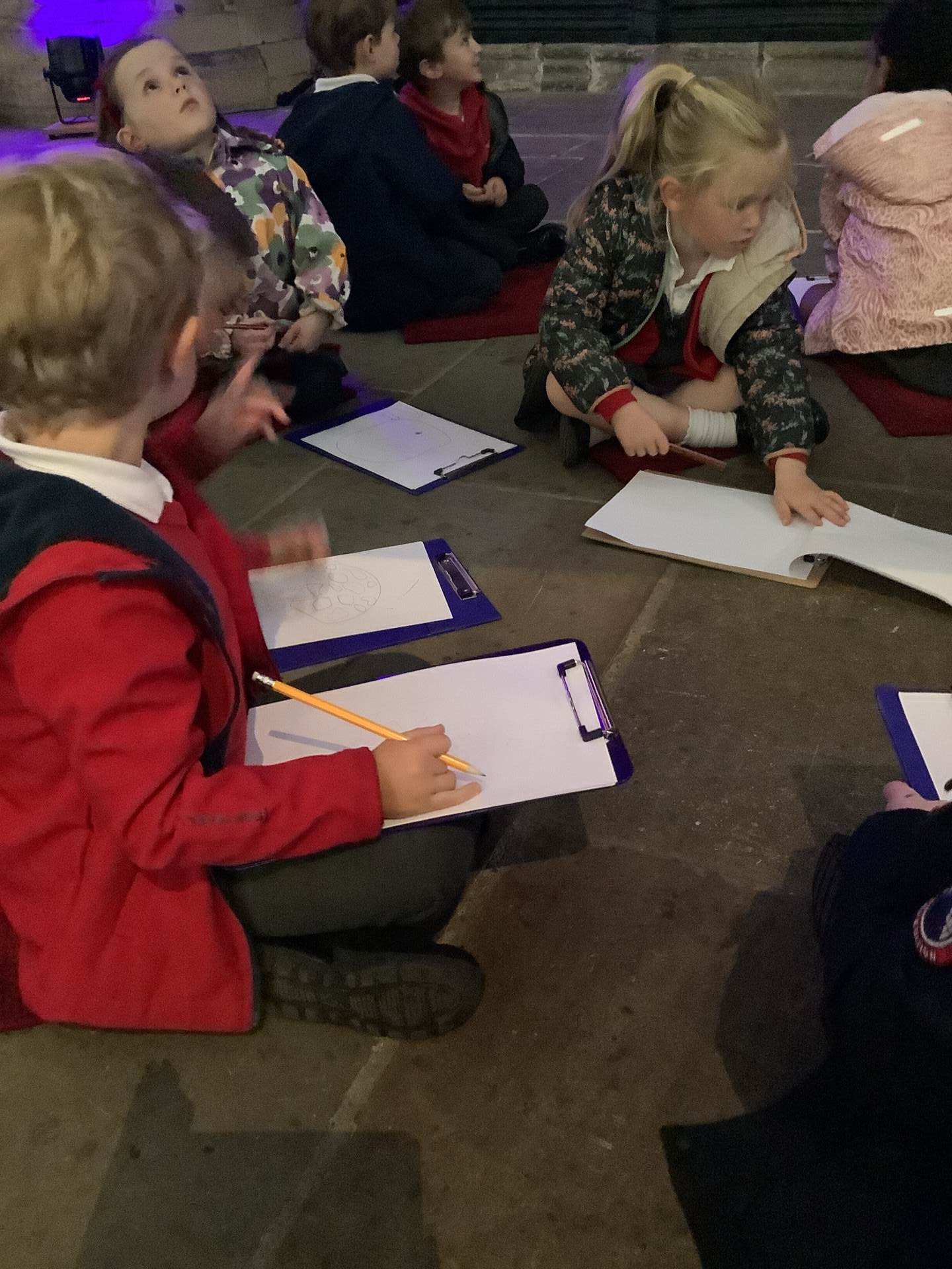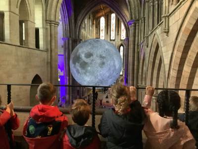 Reception had a wonderful lunar trip to the Abbey today to visit the Museum of the Moon. The Abbey staff asked children to share their thoughts about the moon. Some said it was a sphere and that it had craters, whilst others said they loved the moon!