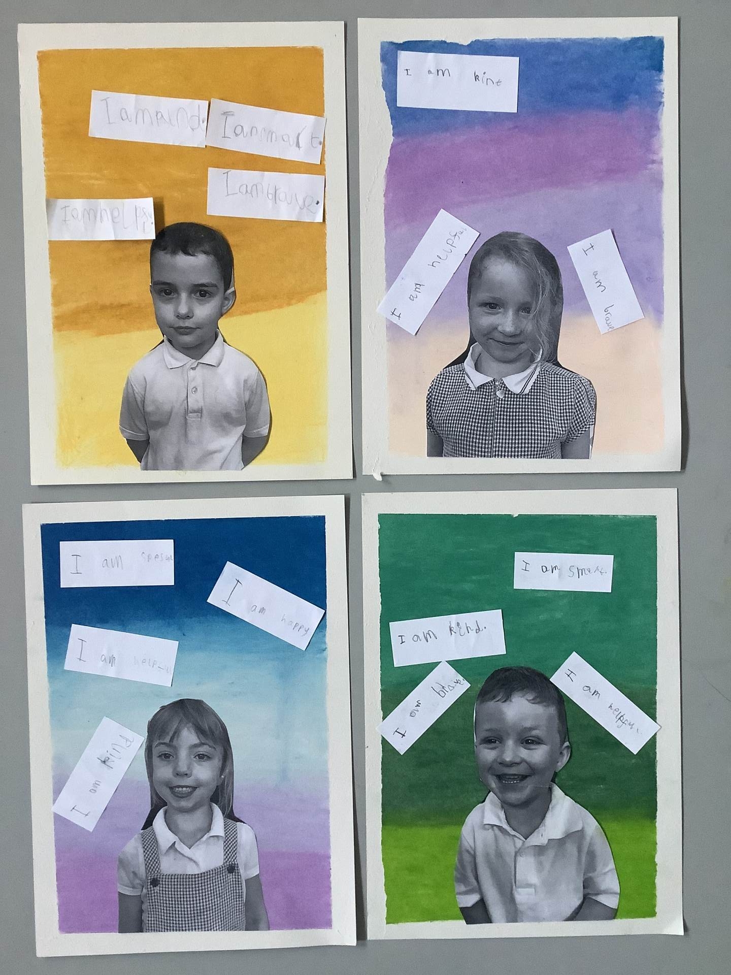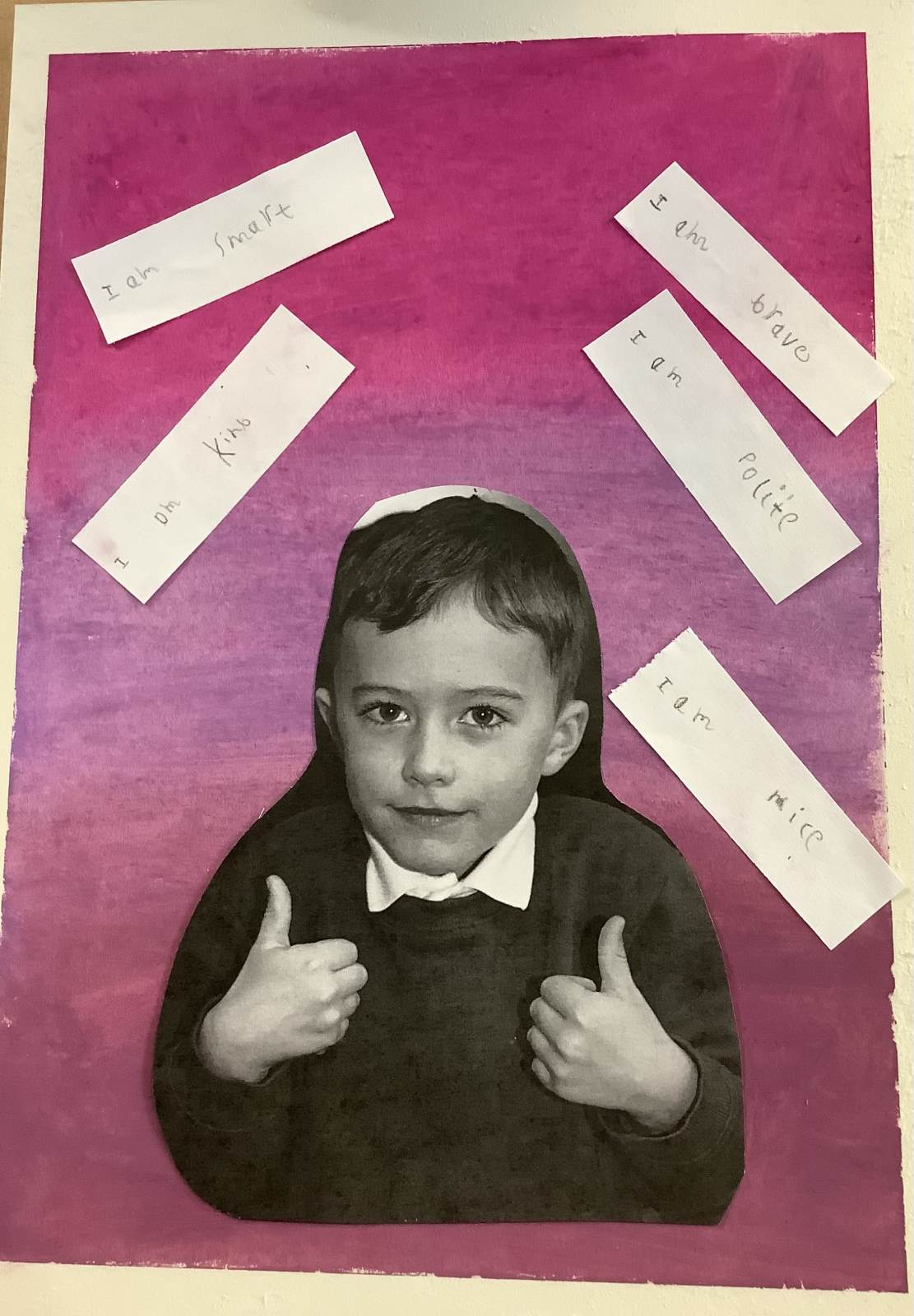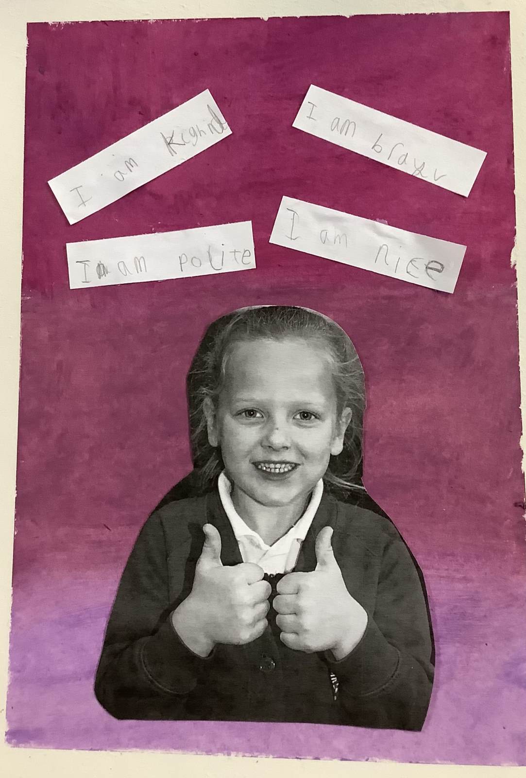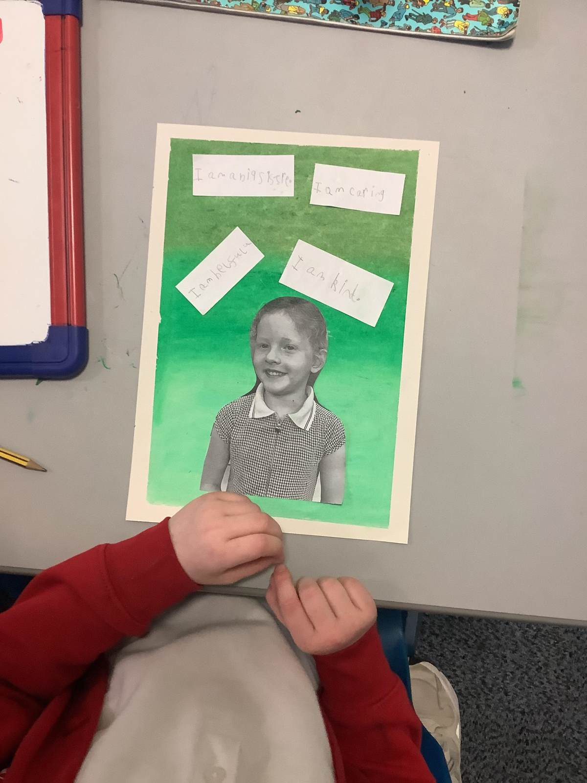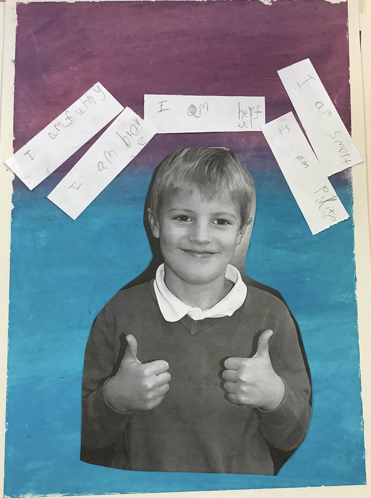 Today, children have been thinking about what makes them special and unique. They created a background for a piece of art consisting of their favourite colours and then attached a black and white picture of themselves. They then thought about traits that they have that they are proud of and wrote some positive affirmations about themselves. The children came up with some lovely ideas about each other as well.