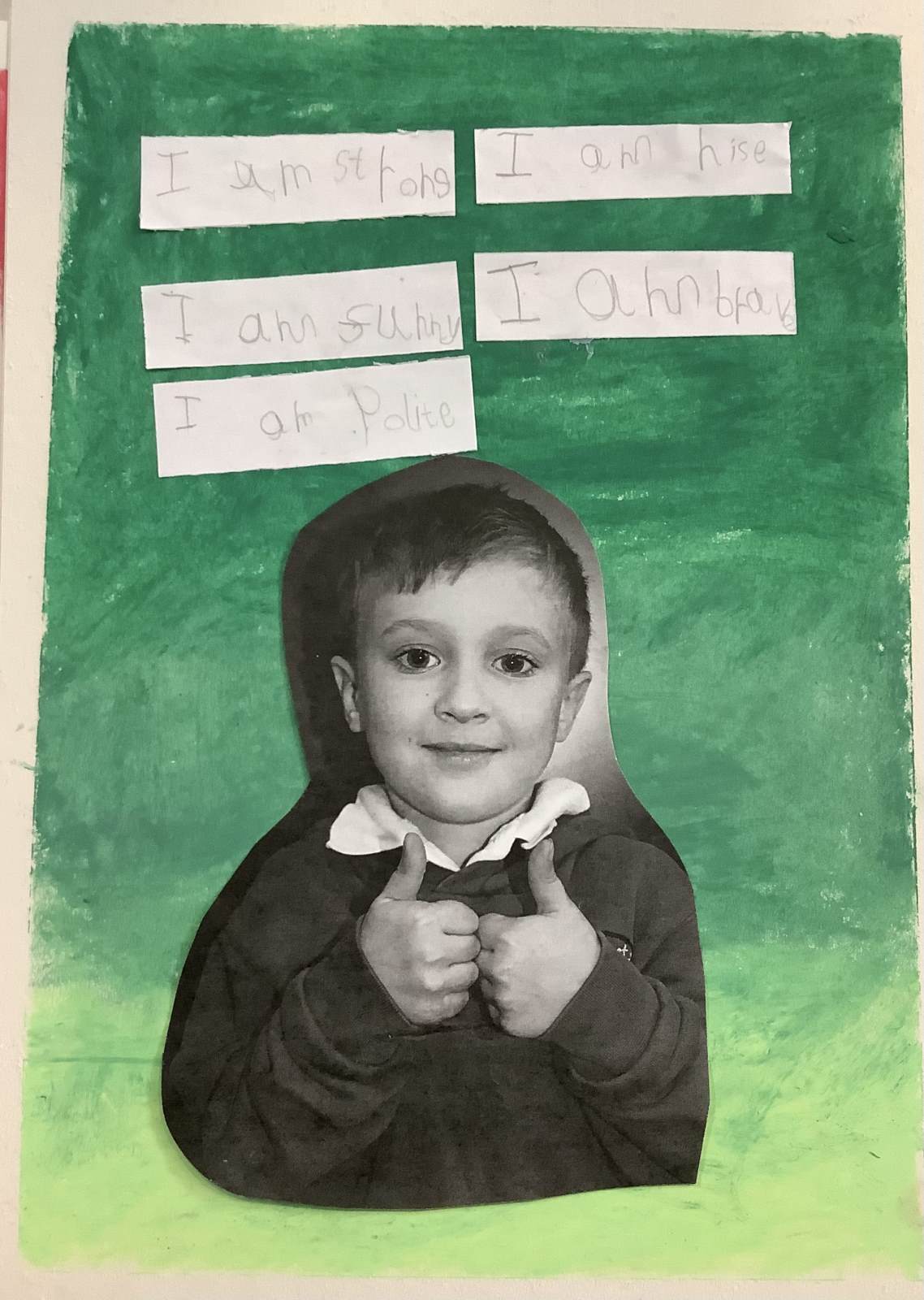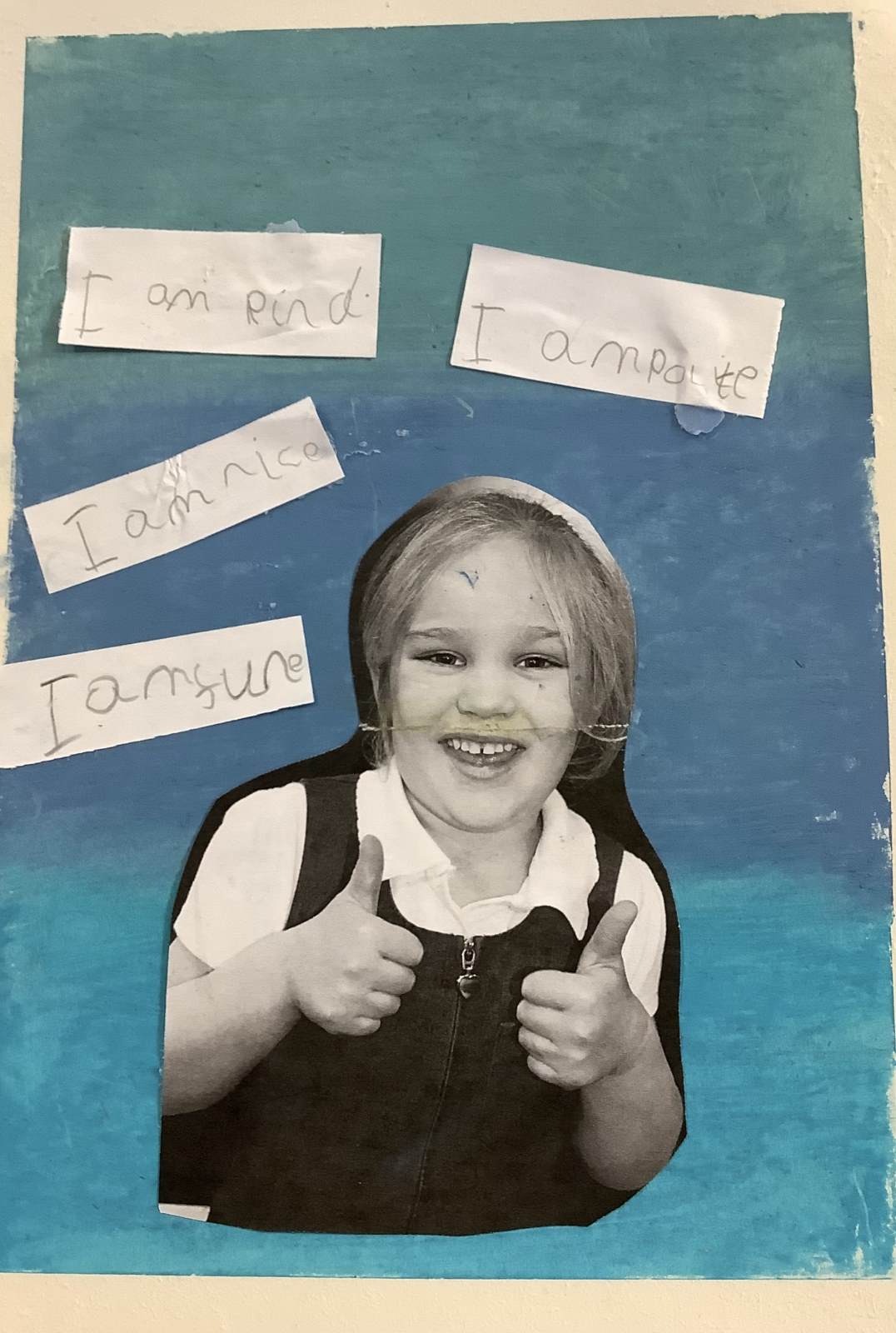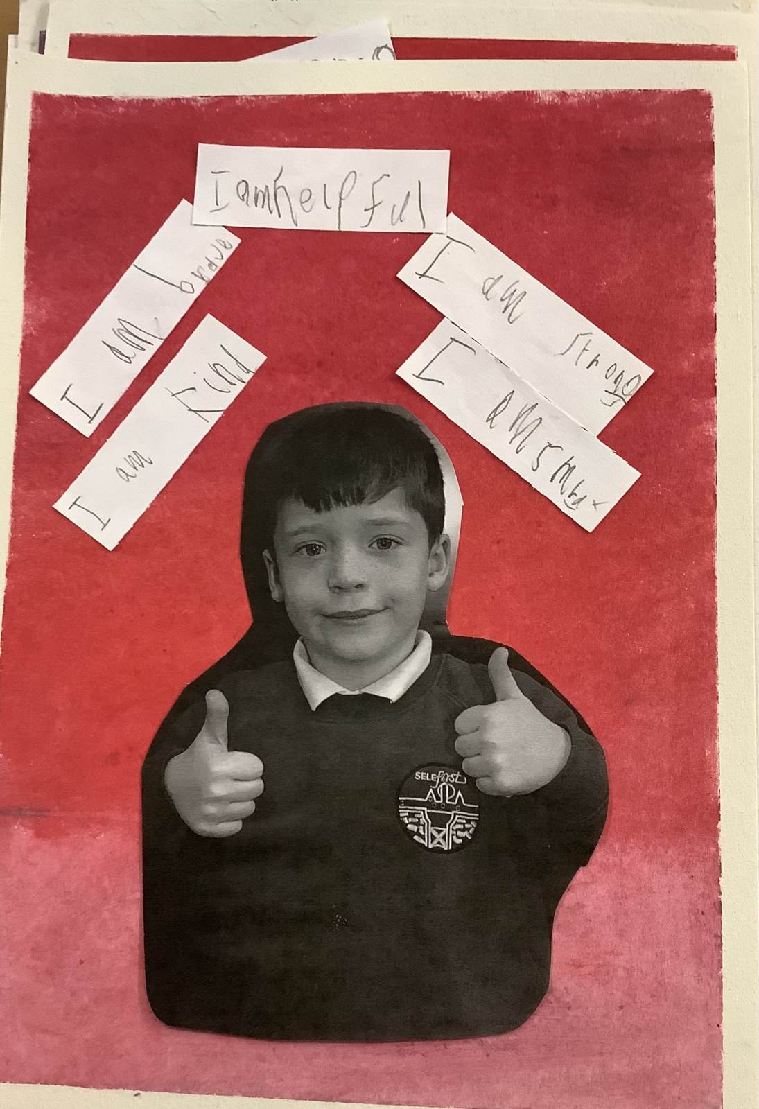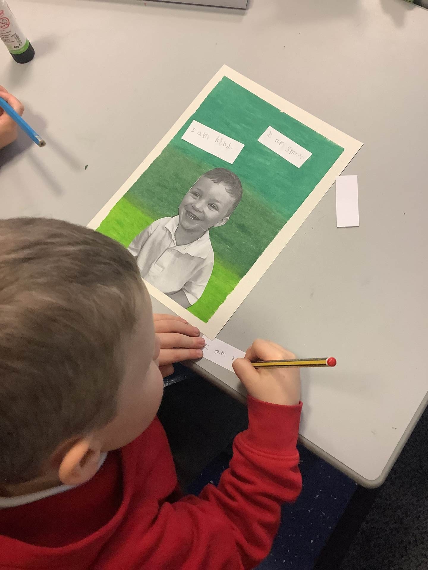 Today, children have been thinking about what makes them special and unique. They created a background for a piece of art consisting of their favourite colours and then attached a black and white picture of themselves. They then thought about traits that they have that they are proud of and wrote some positive affirmations about themselves. The children came up with some lovely ideas about each other as well.