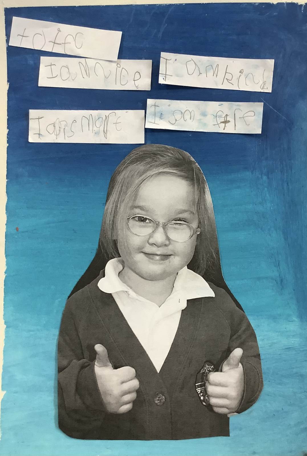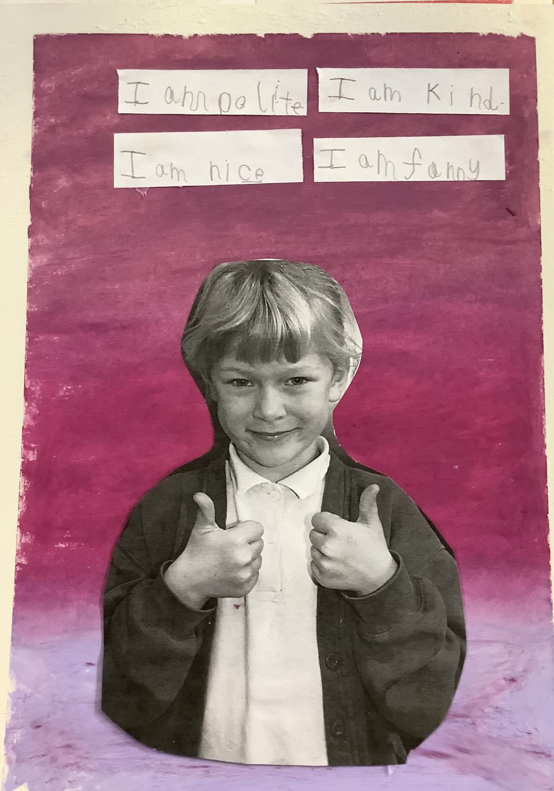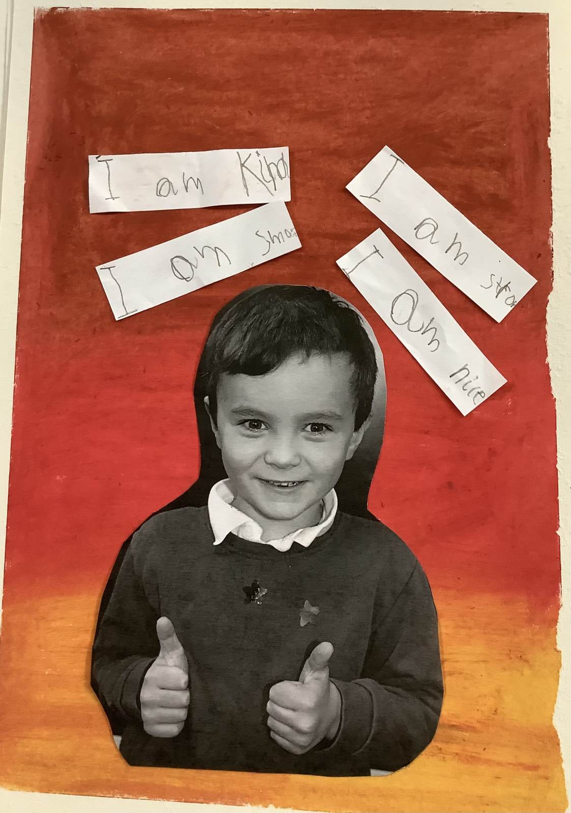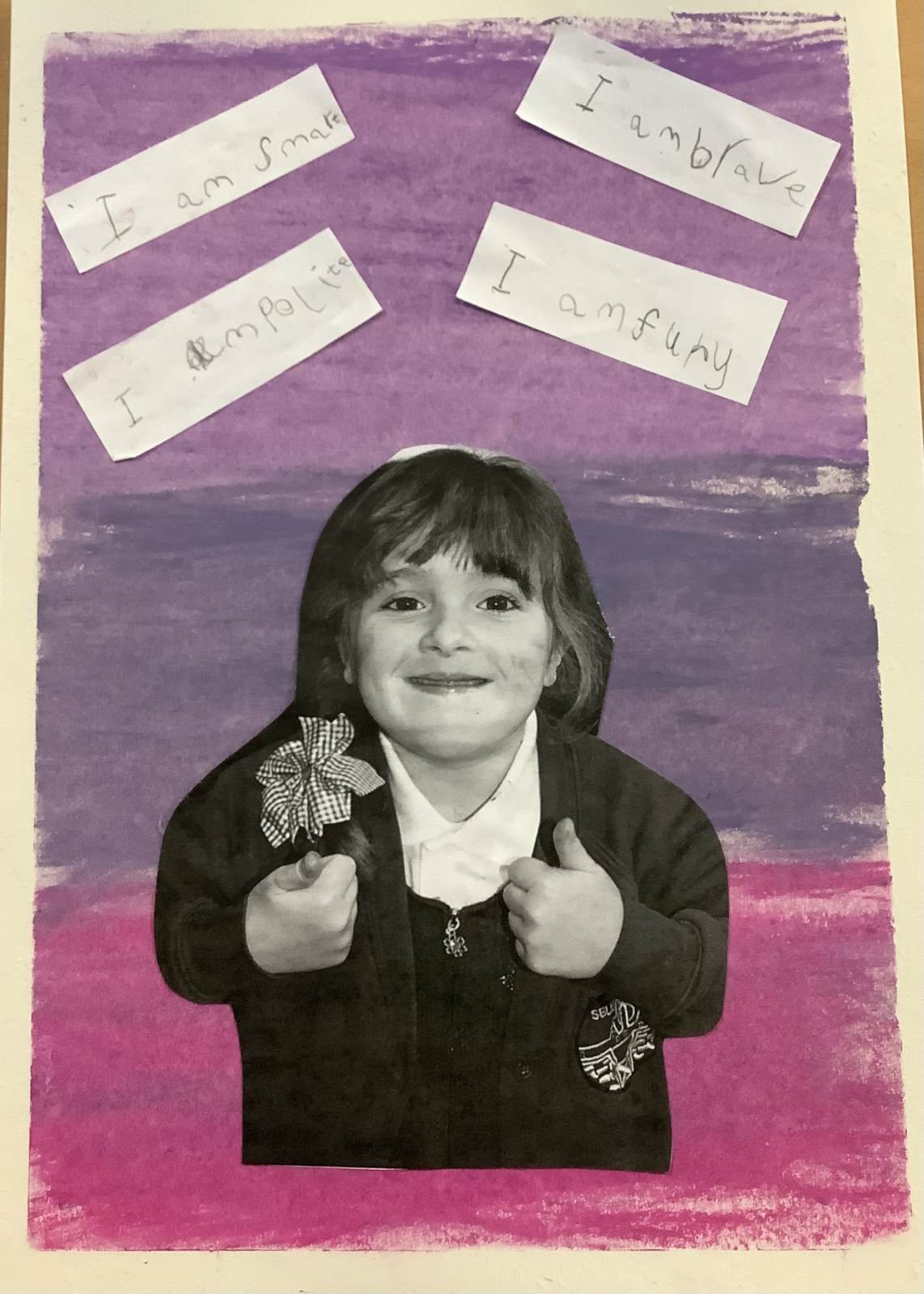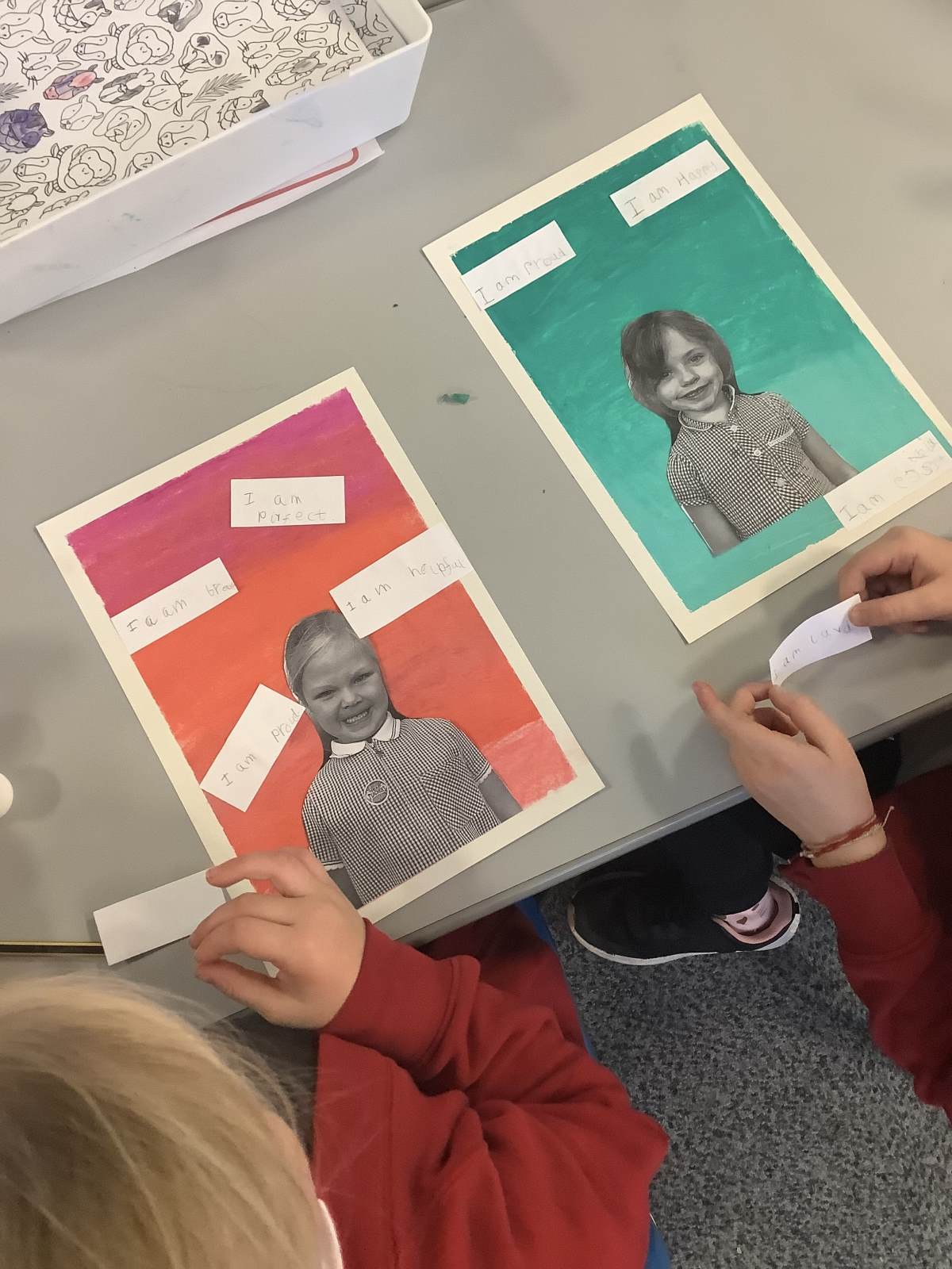 Today, children have been thinking about what makes them special and unique. They created a background for a piece of art consisting of their favourite colours and then attached a black and white picture of themselves. They then thought about traits that they have that they are proud of and wrote some positive affirmations about themselves. The children came up with some lovely ideas about each other as well.