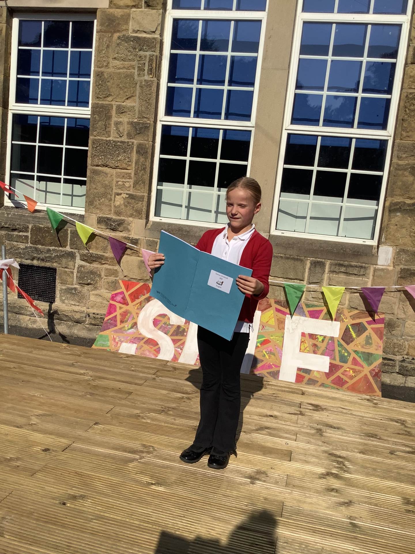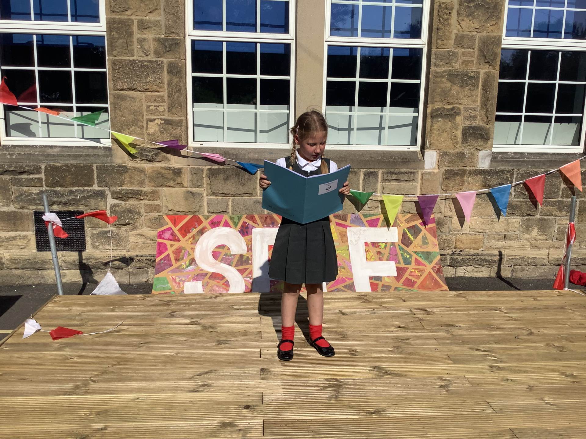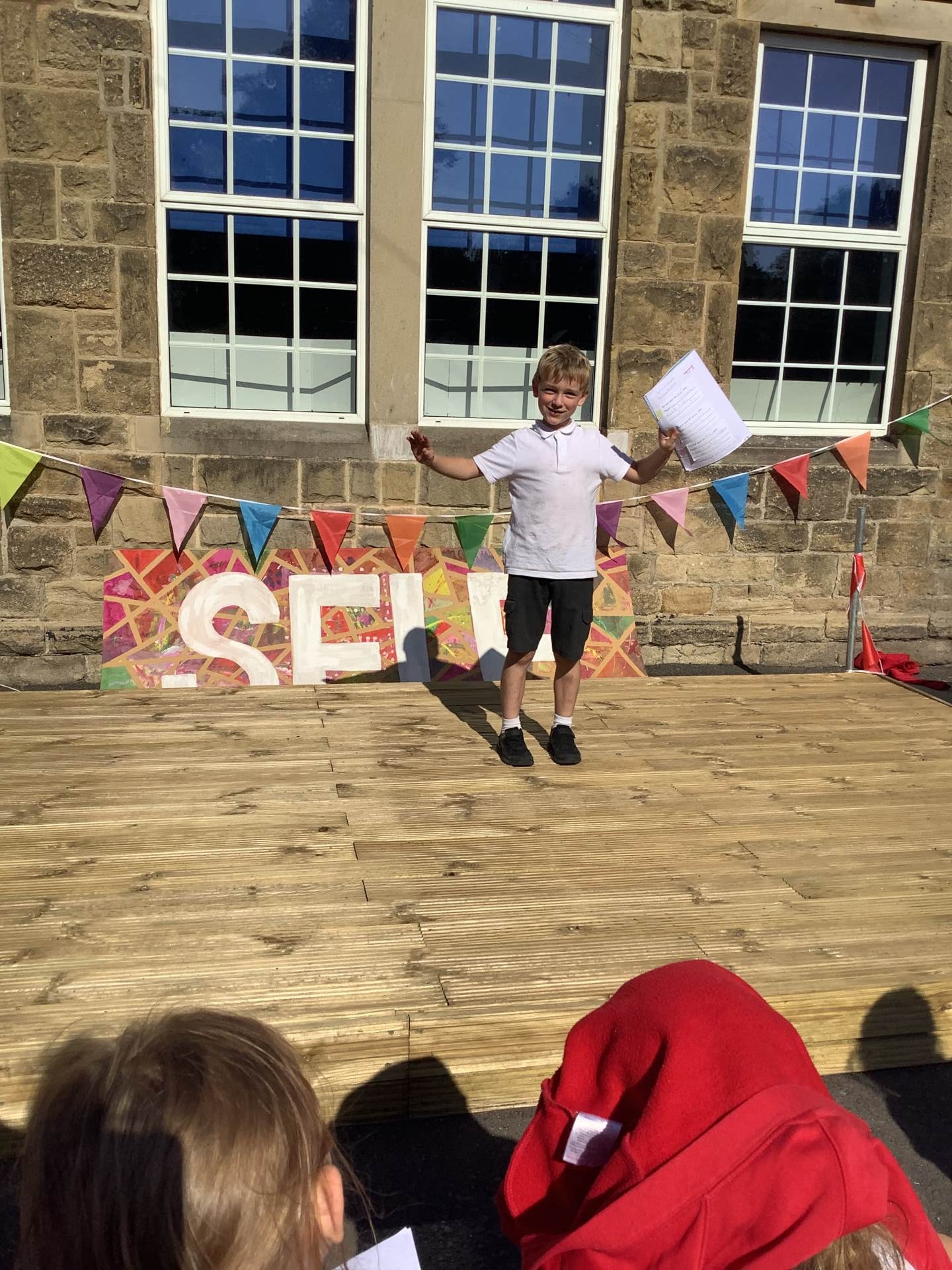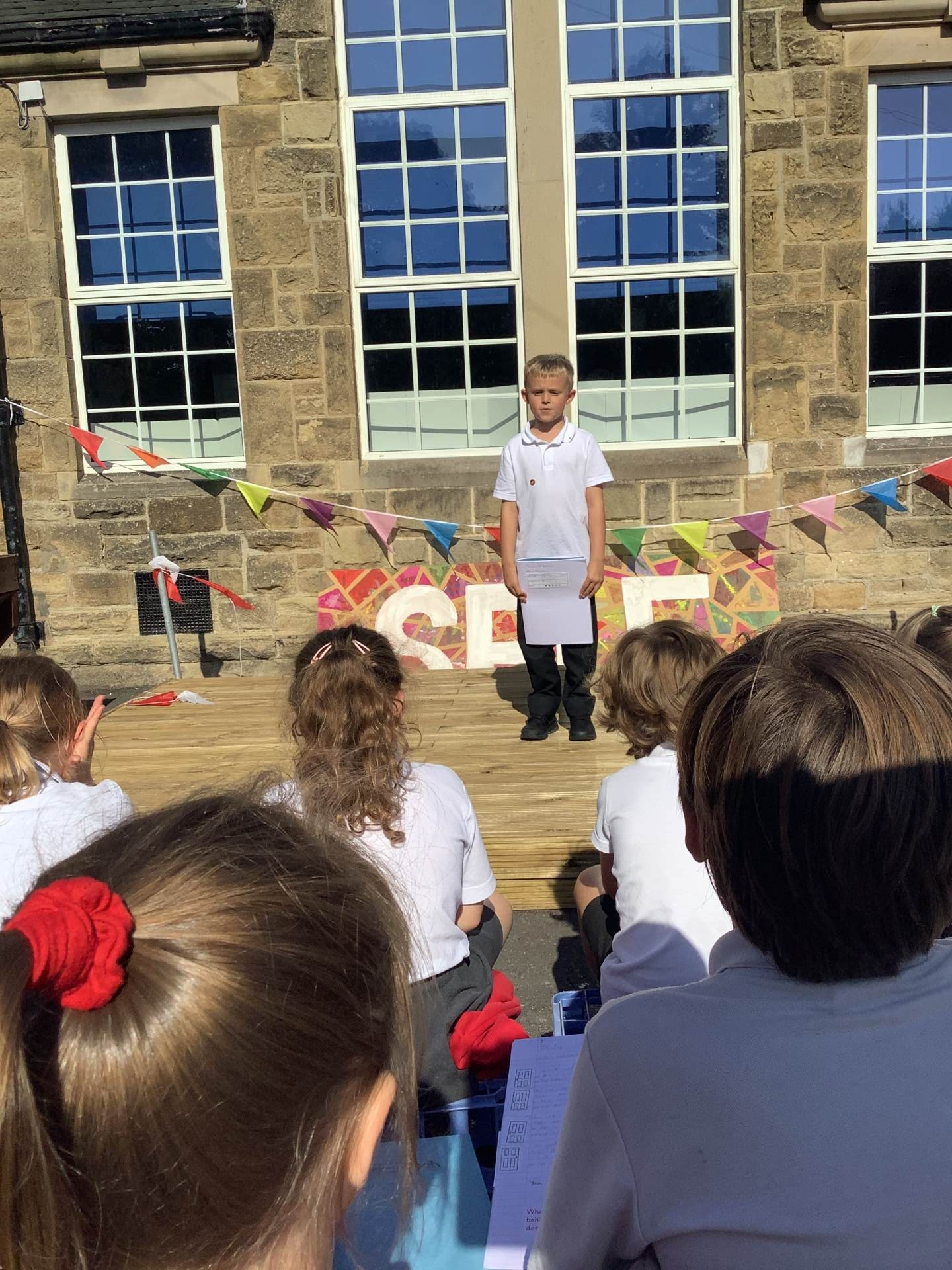 We have also been writing our own poetry based on Miroslav Holub's The Door. We practised our poems and recited them on stage in our new performance zone on the yard.