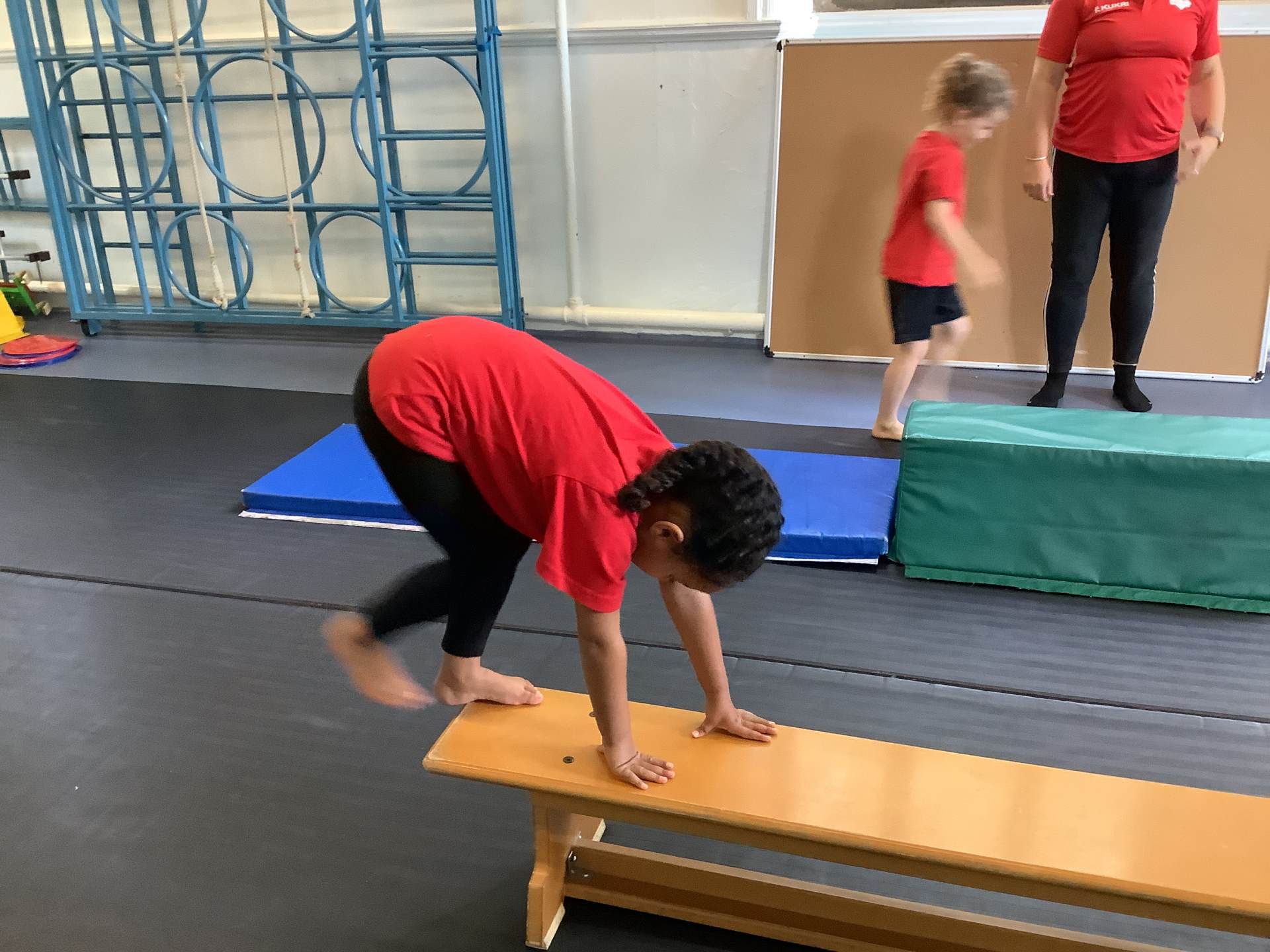 This half term, Reception are enjoying Gymnastics lessons with our specialist coach, Gayle Smith. This week they practised bunny hops, leaping over benches, jumping with two feet together, holding balances with upper arm strength and jumping into a squat position.