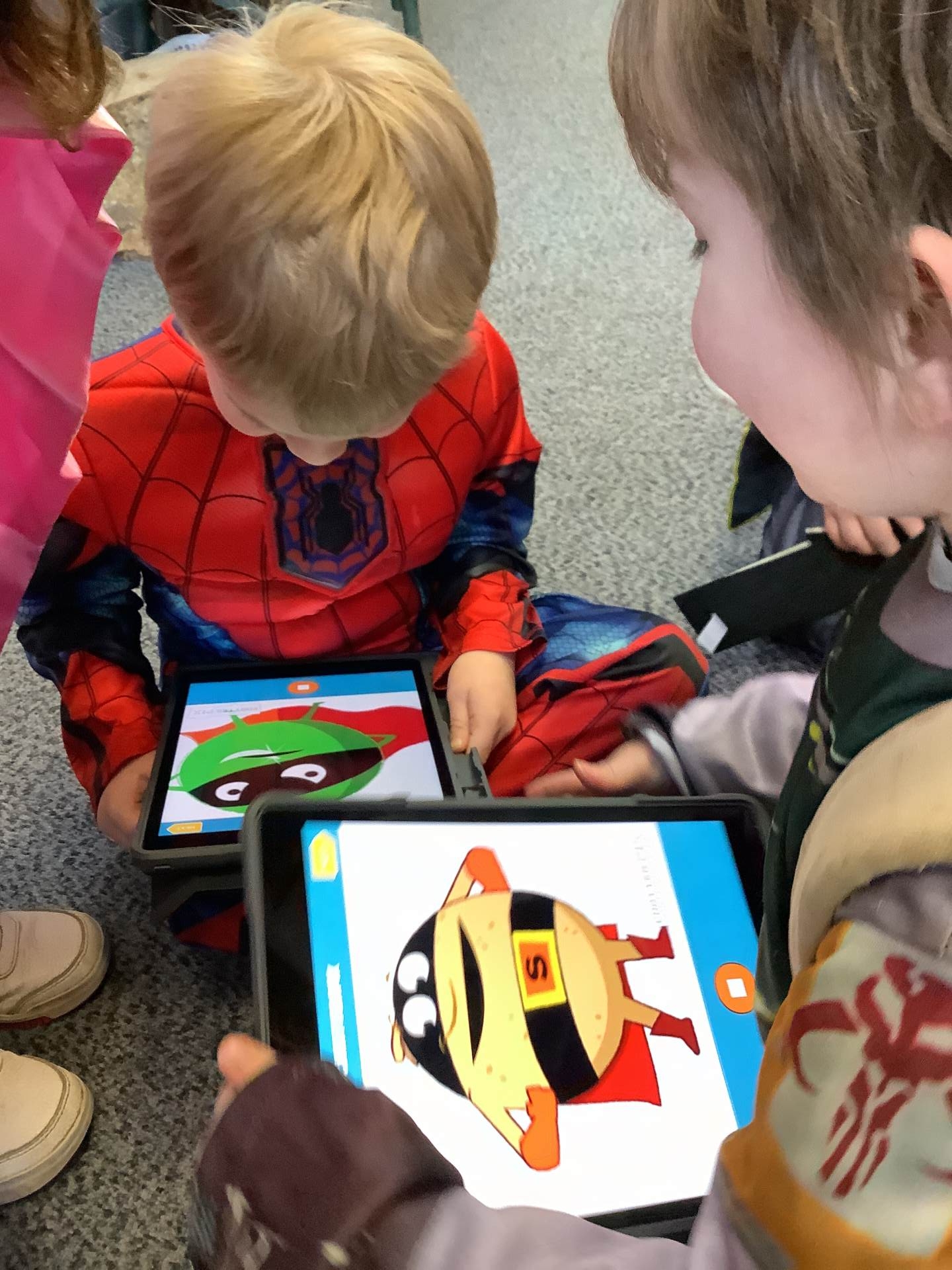 On Friday, children took part in Tech Superhero day, using the app Chatterpix to create their own Supertato talking character and using spheros to programme possible routes to the desert island. As budding engineers, children are increasingly able to reflect on their plans and evaluate what they could do differently, e.g. turn down the speed, change the direction, make the obstacle course longer/shorter. They absolutely loved dressing up as Superheroes!