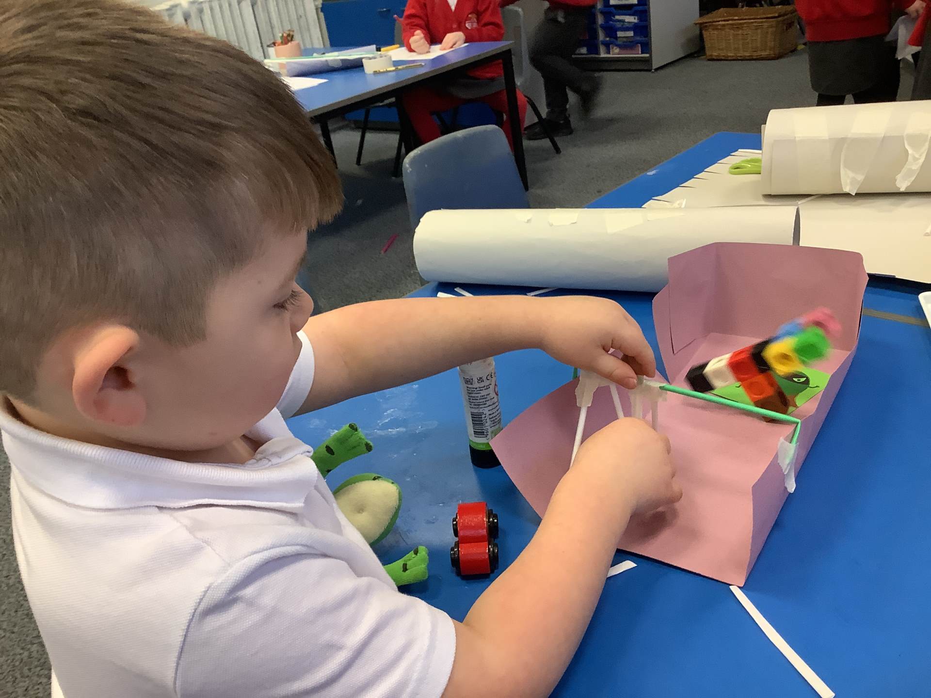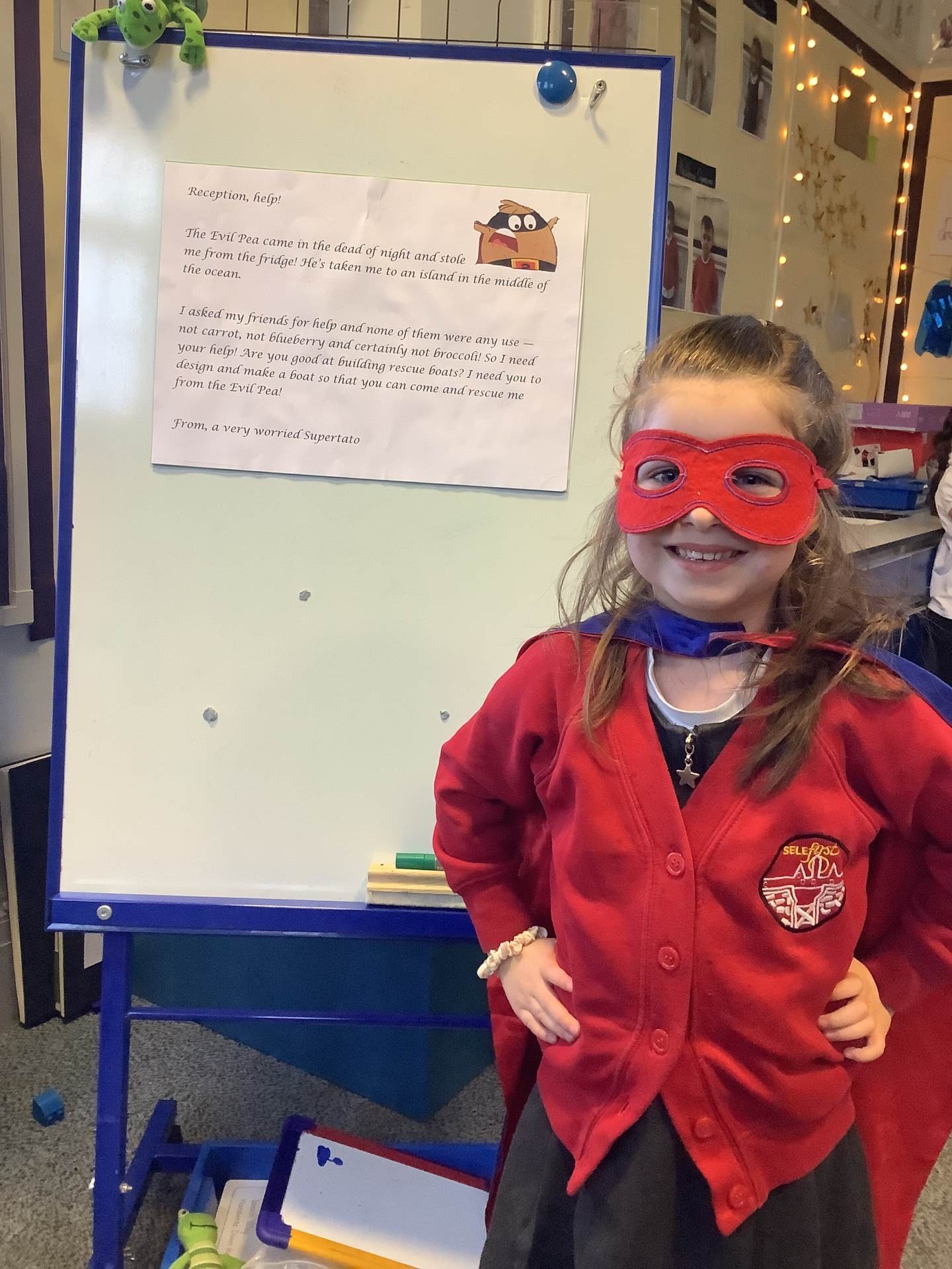 What an exciting week in Reception! After Evil Pea announced he had captured Supertato and taken him to a desert island, Reception swiftly set about designing and building boats to rescue Supertato. They have conducted floating and sinking experiments, measured amounts and lengths, written numerous wanted posters for the ever elusive Evil Pea and used DT joins to make cardboard traps.