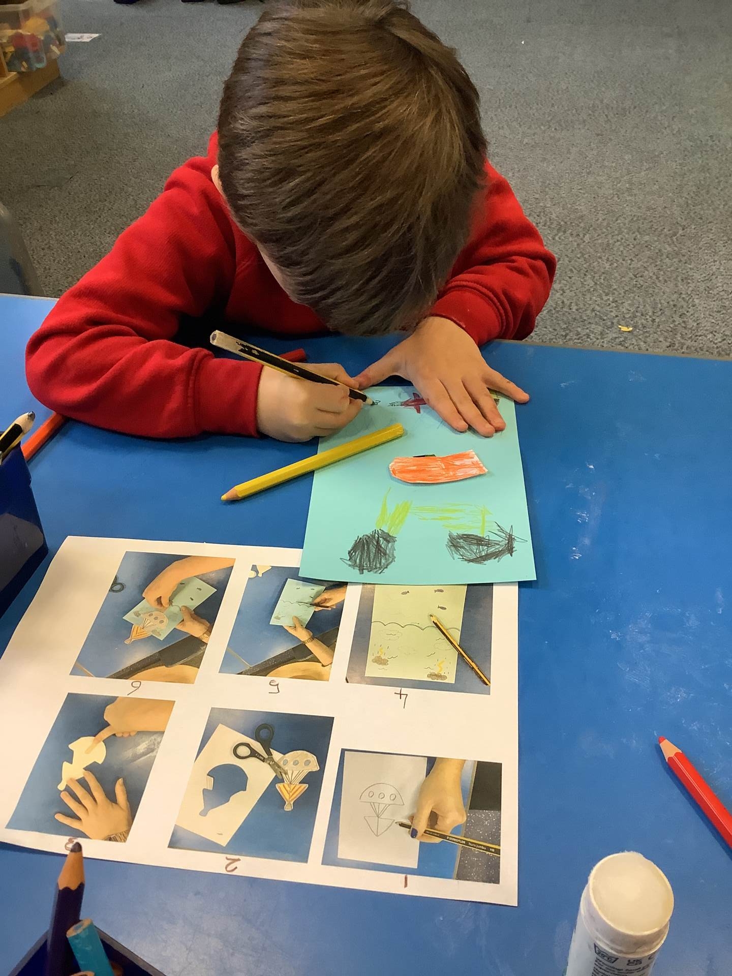 A day full of art and witch's potions in Reception! Children built on their printing skills from this half term to make stamps using textured materials. They made paper animations of boats in stormy seas and created disgusting recipes for Winnie's Pumpkin.