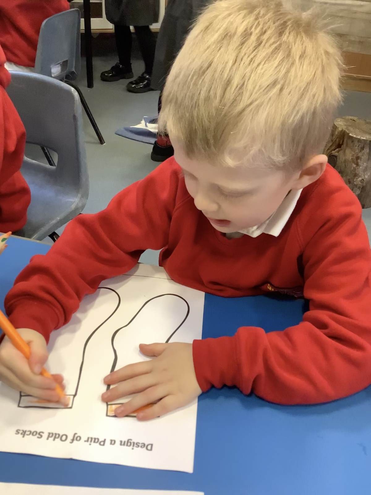 Reception have done lots of writing this week! From how they would fill their bucket of kindness for Kindness Day, to odd sock designs and orders for the cafe, children have been using their phonics to spell simple words and emotions, e.g. happy, hug.