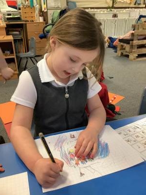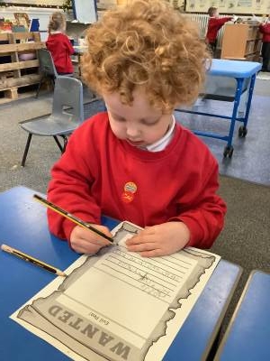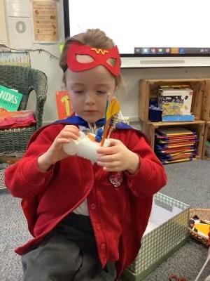 This week they have planned their designs, held many conversations with Evil Pea in the Superhero Rescue Station, written Wanted Posters, built rafts and tested whether they float or sink, and learnt DT joins to build obstacle courses for Evil Pea. Children learnt the names of 3D shapes this week, ready to build their models next week.