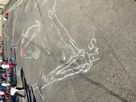 We decided we would draw around our shadows at different points in the day and notice the difference between them.