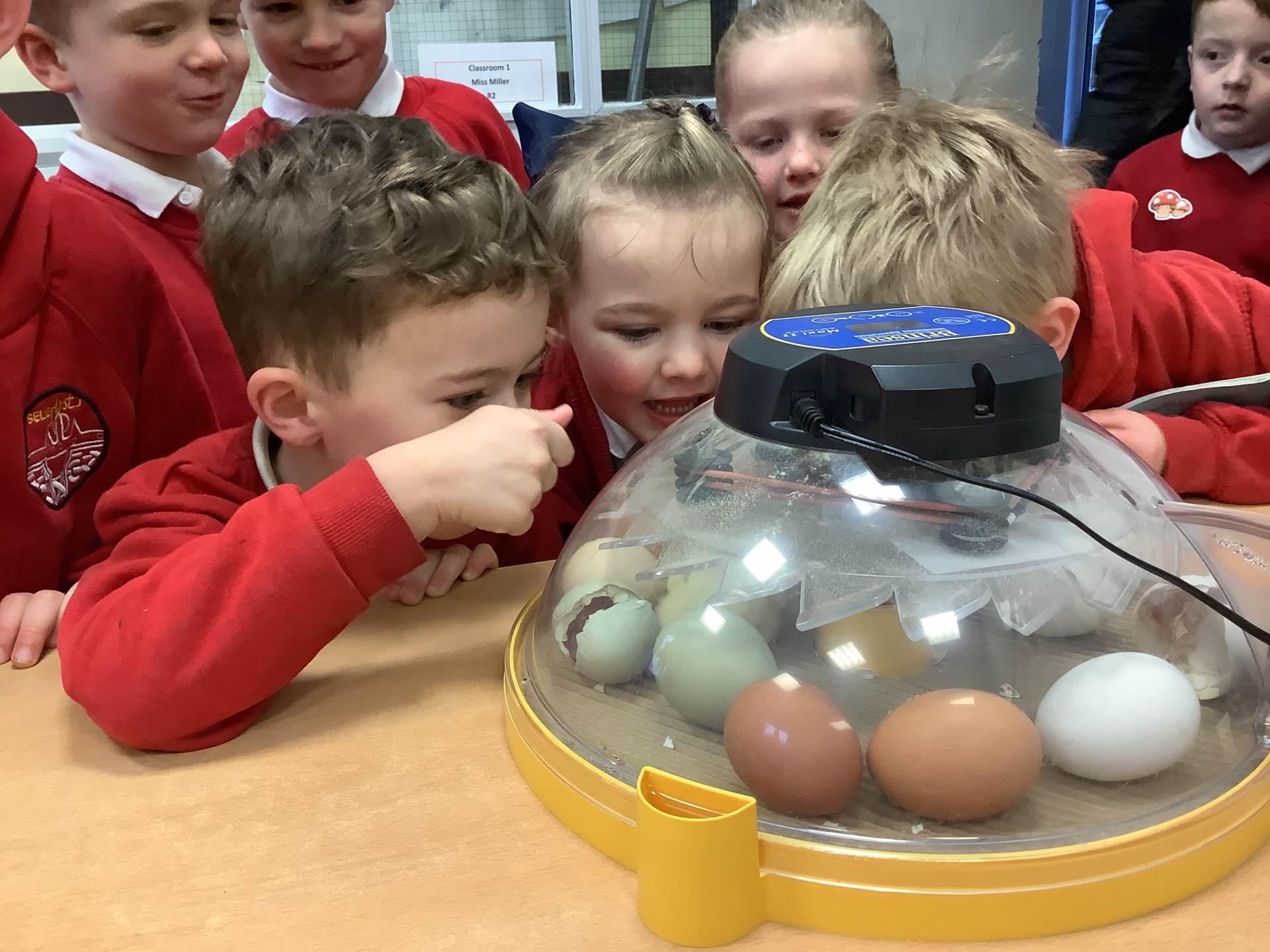 The long awaited chicks have arrived. After 21 days of incubation, the first eggs pipped last night. They are now keeping warm under an incubator.