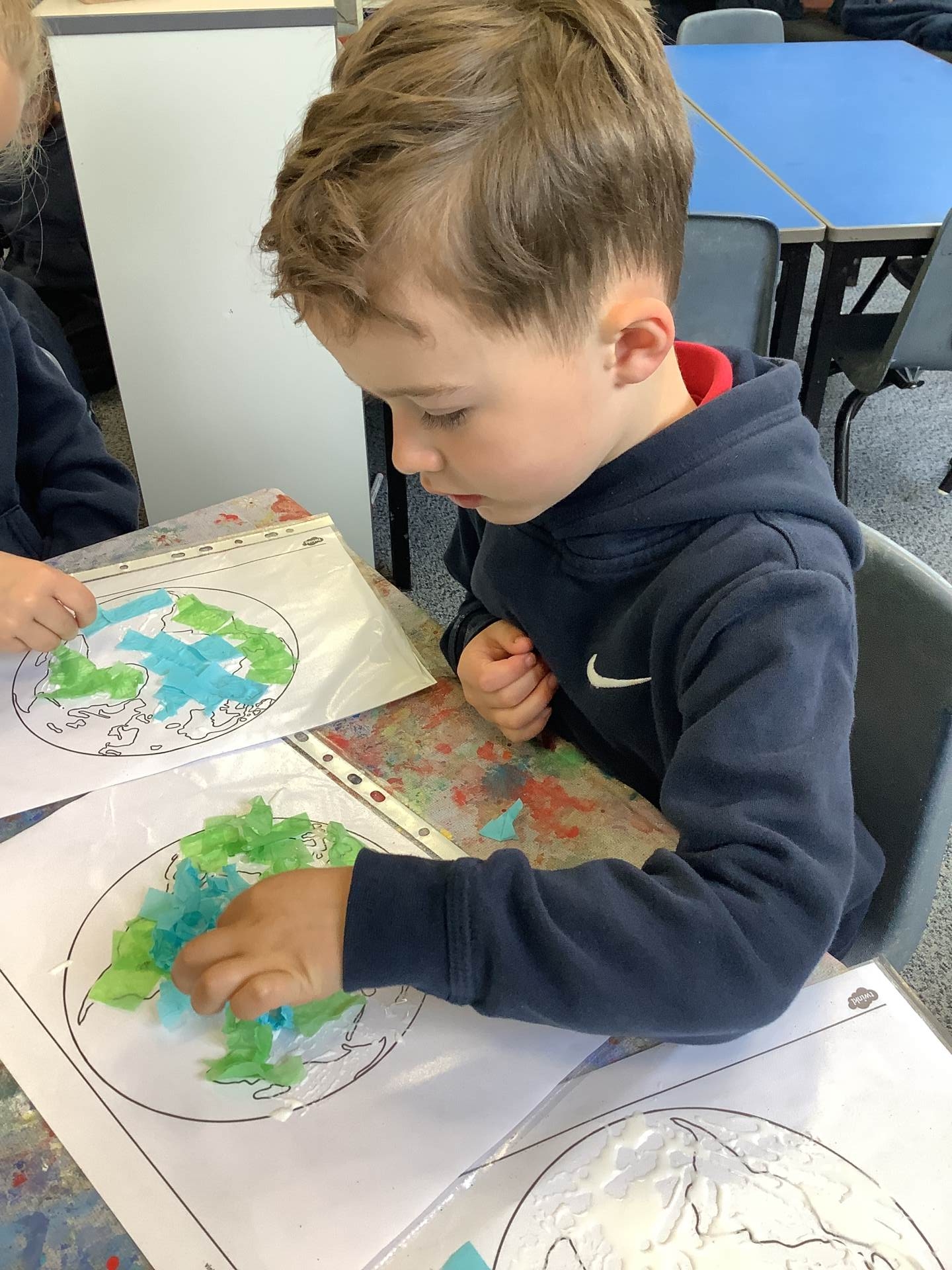 As Reception begin their topic, Maps Maps Maps, they began with the world! Children loved looking at world maps and globes, identifying animals in different continents and noticing land, sea and desert. They created suncatcher globes and wrote post-it notes about things and people they love on Earth.