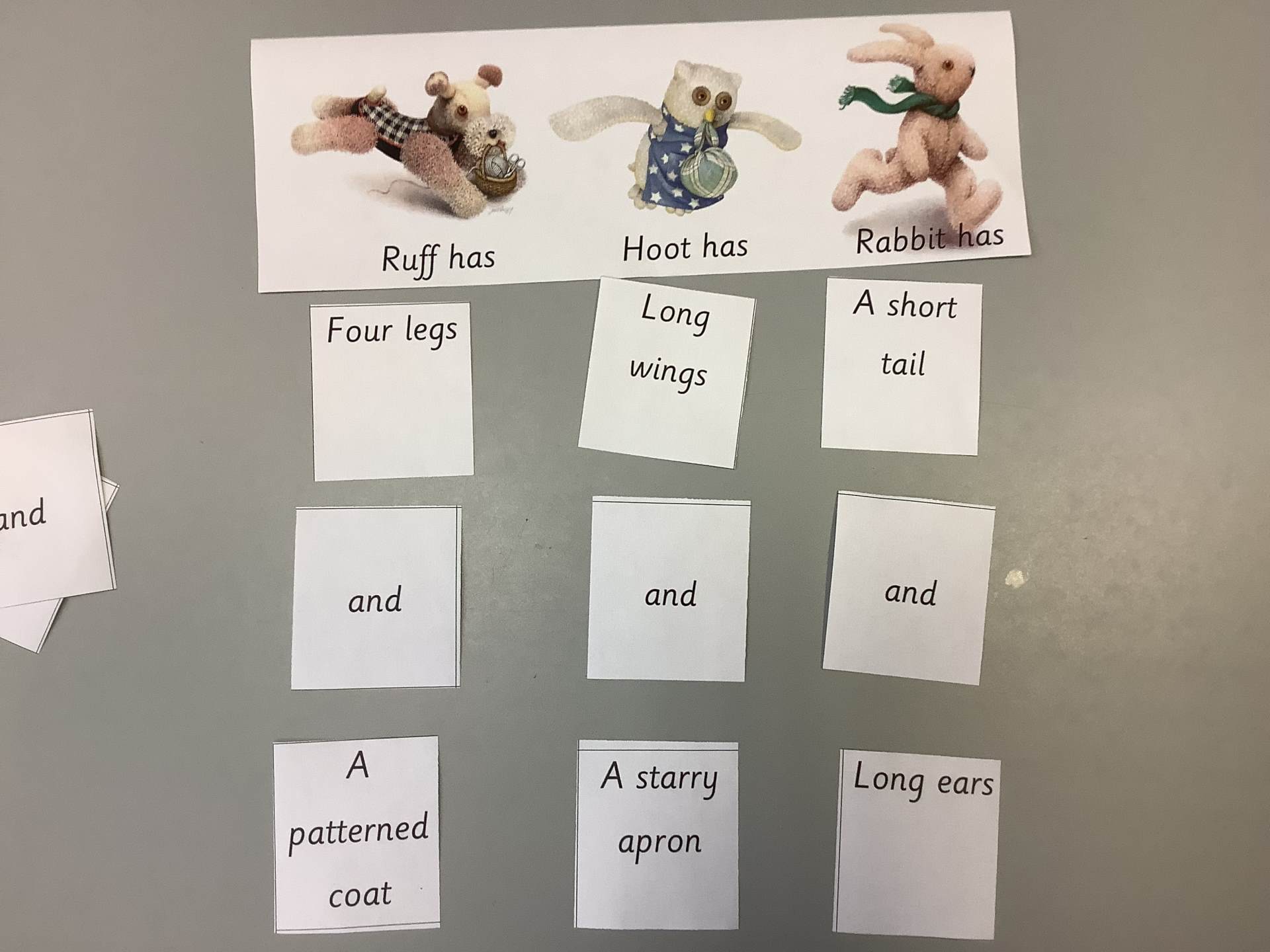 This week we've been using the word 'and' in our writing. We've worked practically to use an 'and' card to join two simple phrases. Using this understanding, we then wrote simple sentences into our books and extended them with 'and'.