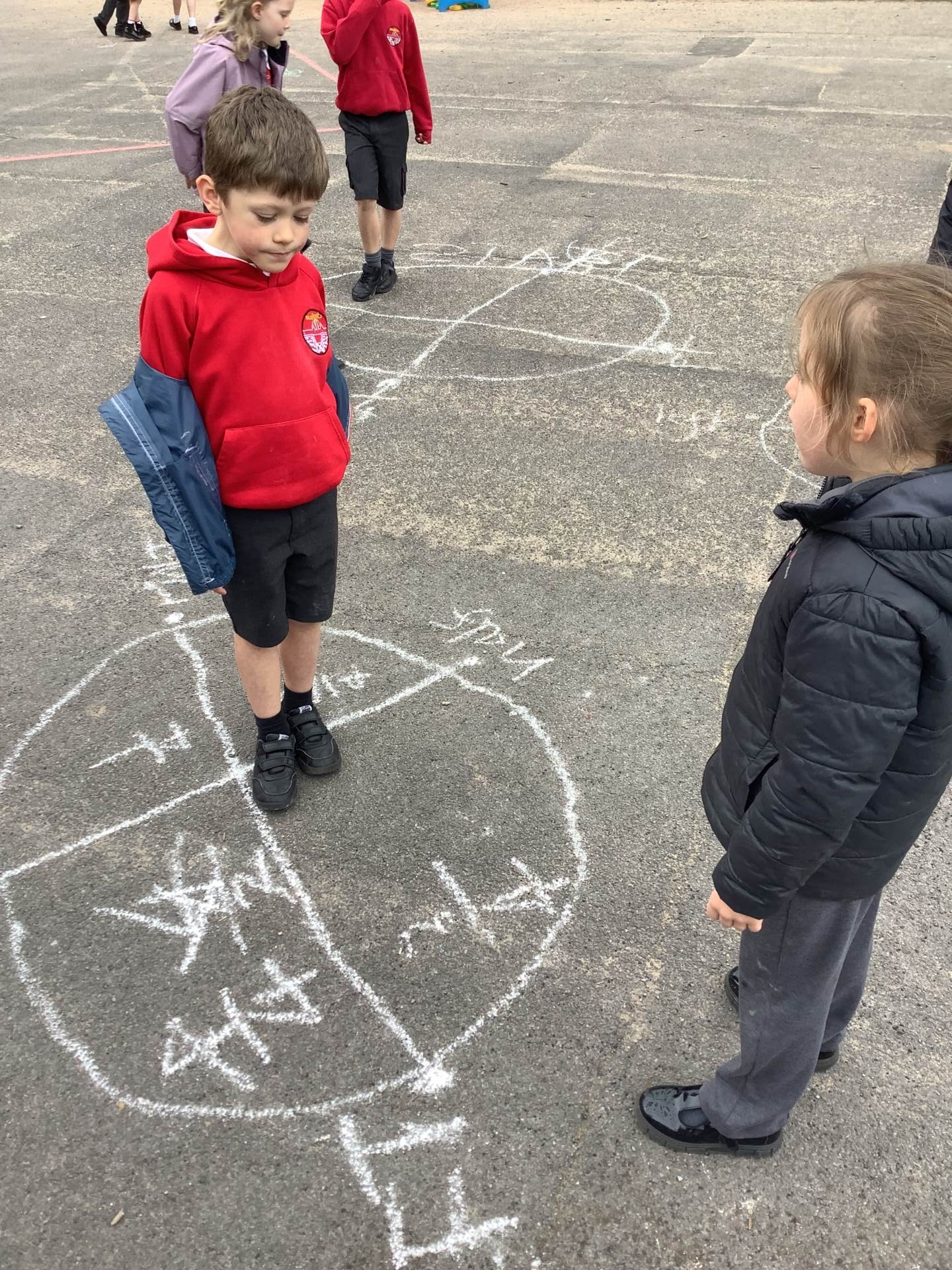 In the following lesson, children used chalk to draw a clock face. They identified quarters and instructed their partner to do quarter turns both, clockwise and anti-clockwise.