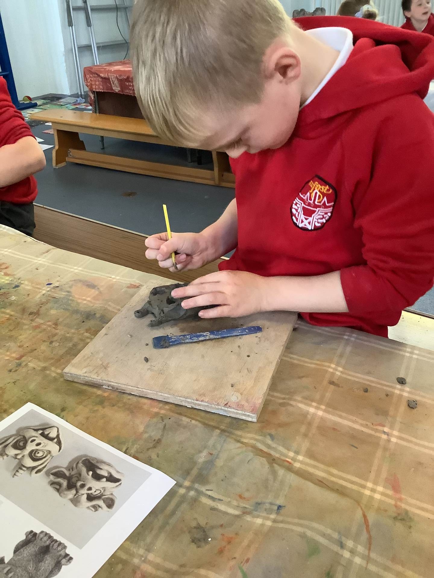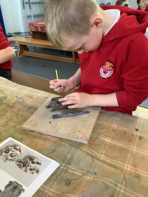 What a fantastic day Year 2 had for this year's Take One Picture Open Day. Y2 used chalk to recreate the streets of London engulfed with flames. They made their own Take One Picture souvenir of something they had learnt from this half term. By the end of the busy day, all children had visited the Art Studio where they sketched, created a shadow puppet and moulded their own clay gargoyle.
