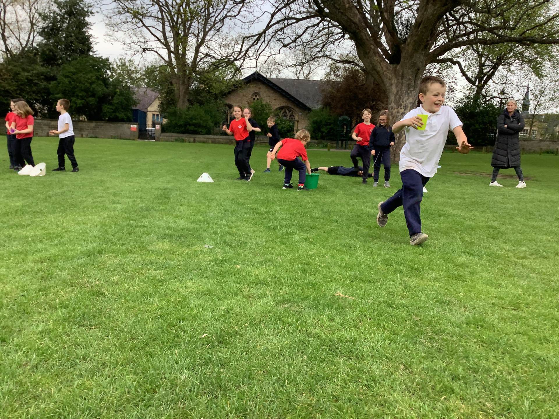In PE this half term, our focus has been Athletics. We have had several challenges of jumping, throwing and this week we were running! The children had to work in teams to fill plastic bottles with water in a relay.