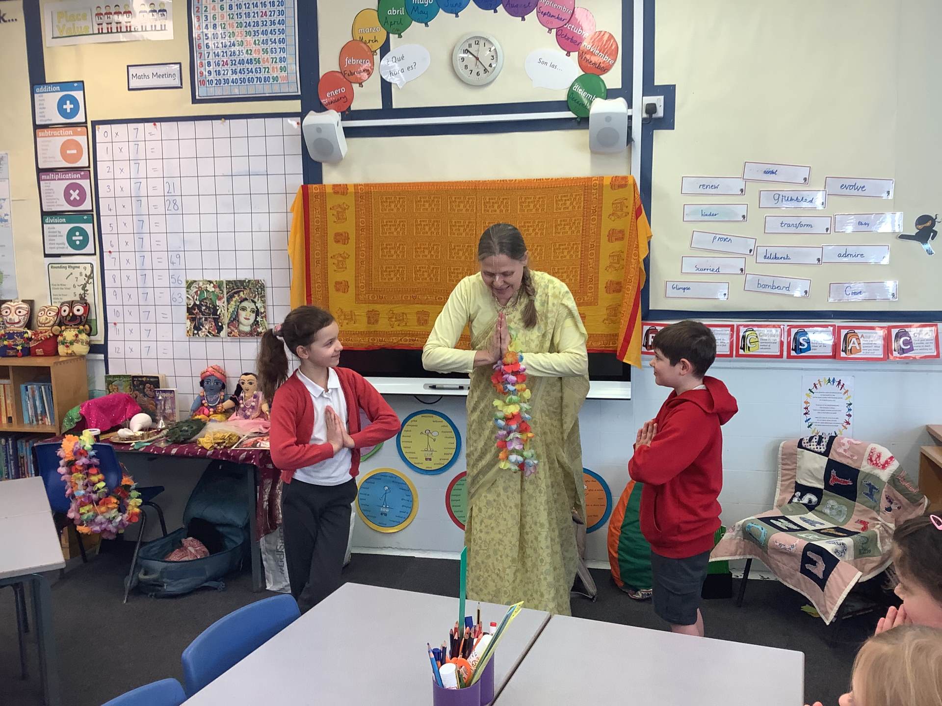 She explained what it is like to be a Hindu in Britain today, treated the children to a musical performance and demonstrated an arti ceremony.