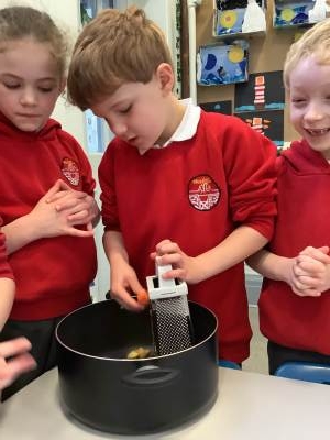 Children made and tasted vegetable soup to warm Little Bear before lighting their salt-dough lanterns to help him drift off to sleep.