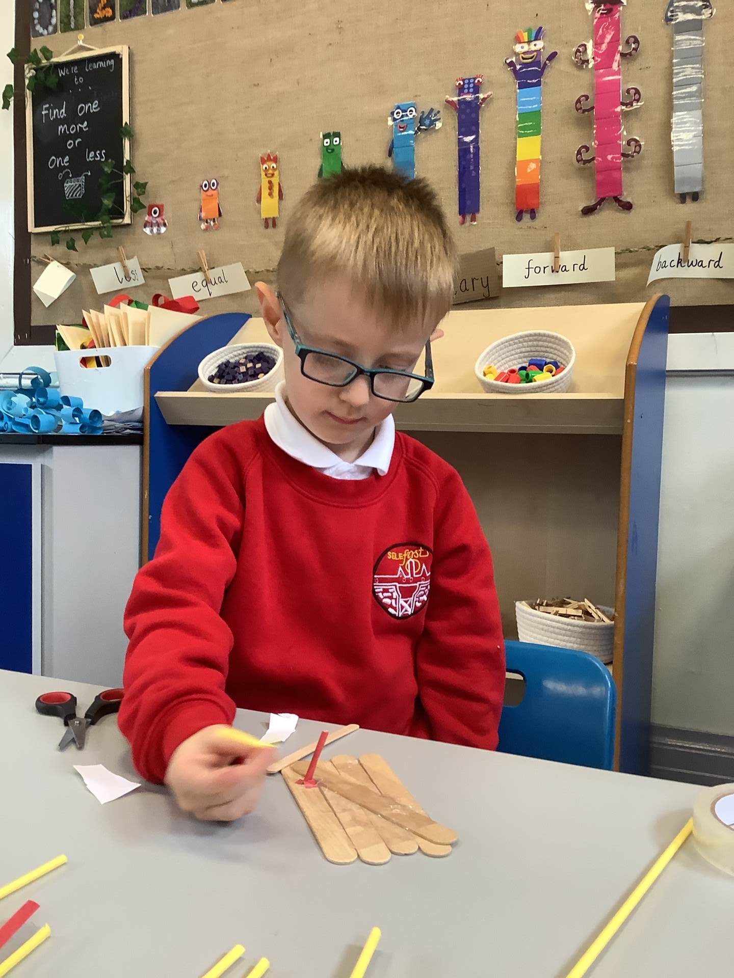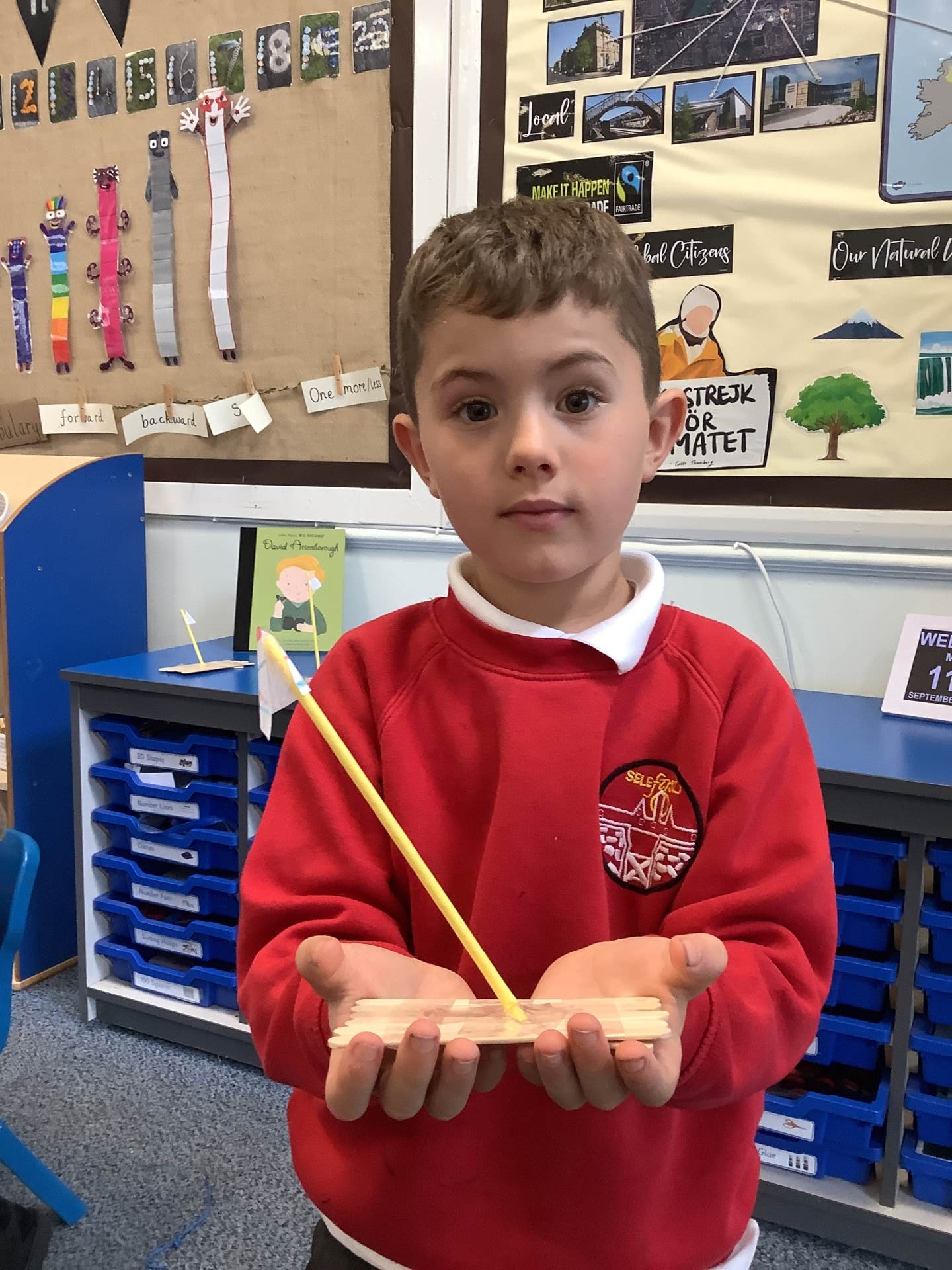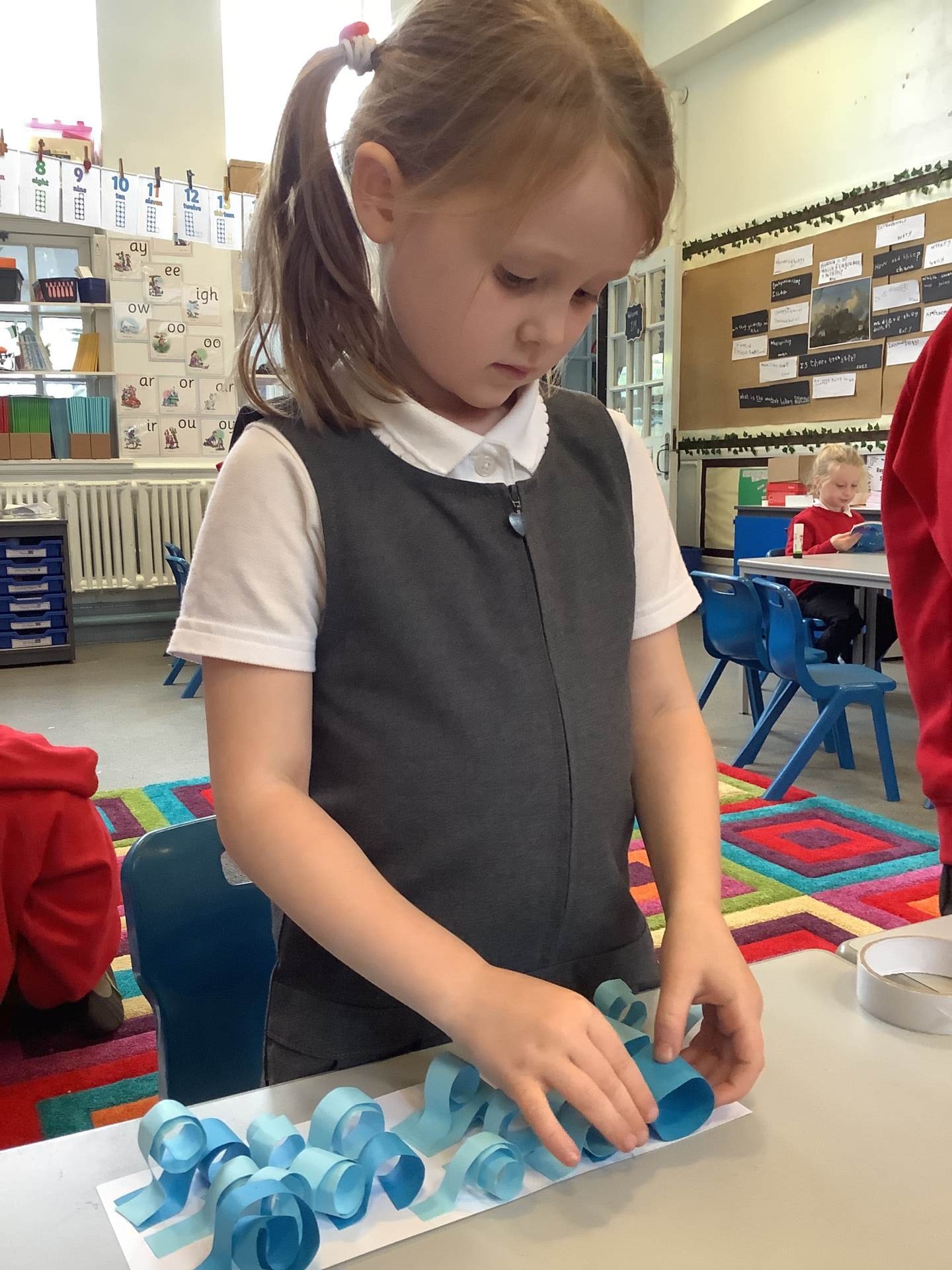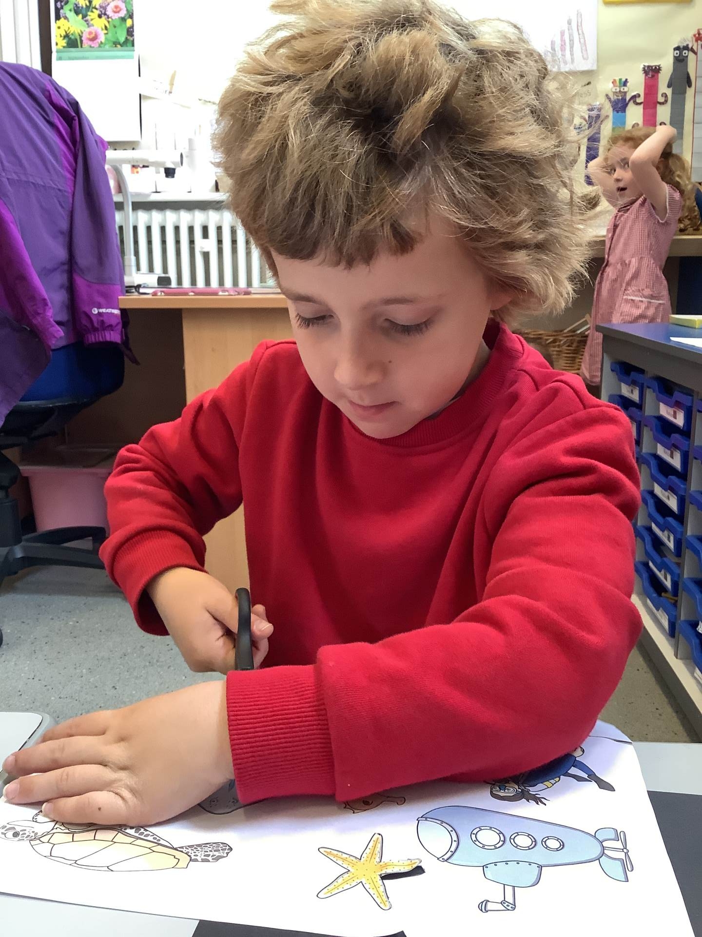 Using the non-fiction text The Big Book of the Blue as inspiration, this week children have been thinking about the oceans and the animals that live there. They have created their own deep sea animals; designed and created a simple raft and made waves for a piece of artwork by curling and rolling paper.