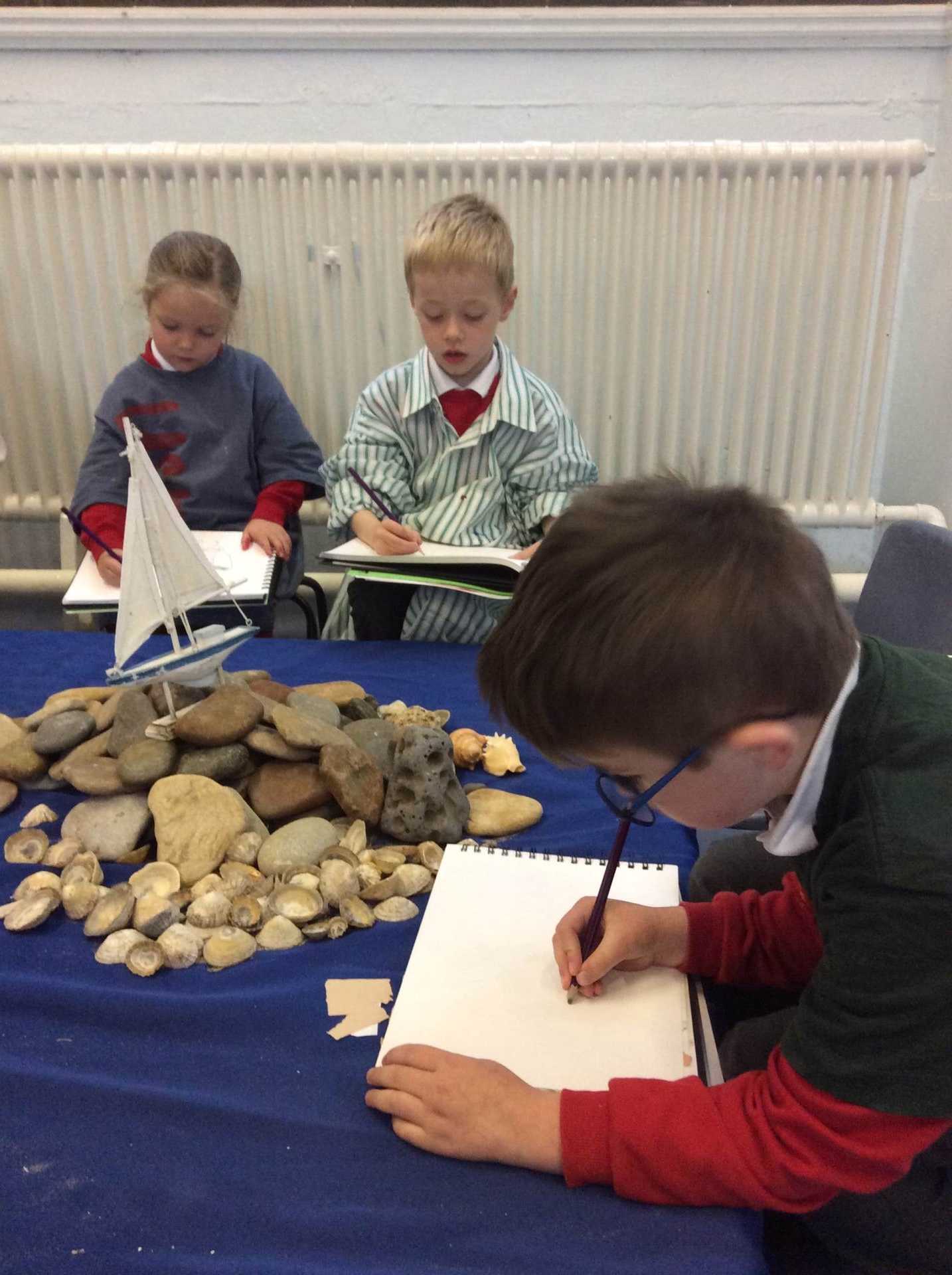 This week Year 1 visited the Art Studio to immersed themselves in activities linked to our Take One Picture project. They practised their observational drawing skills, sculpted clay tiles and created a wooden lighthouse. Children have continued their work in the classroom and are very pleased with the results!
