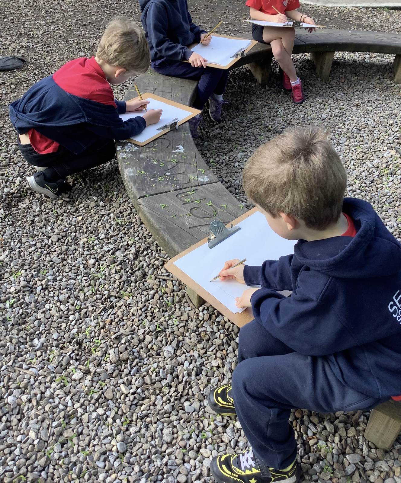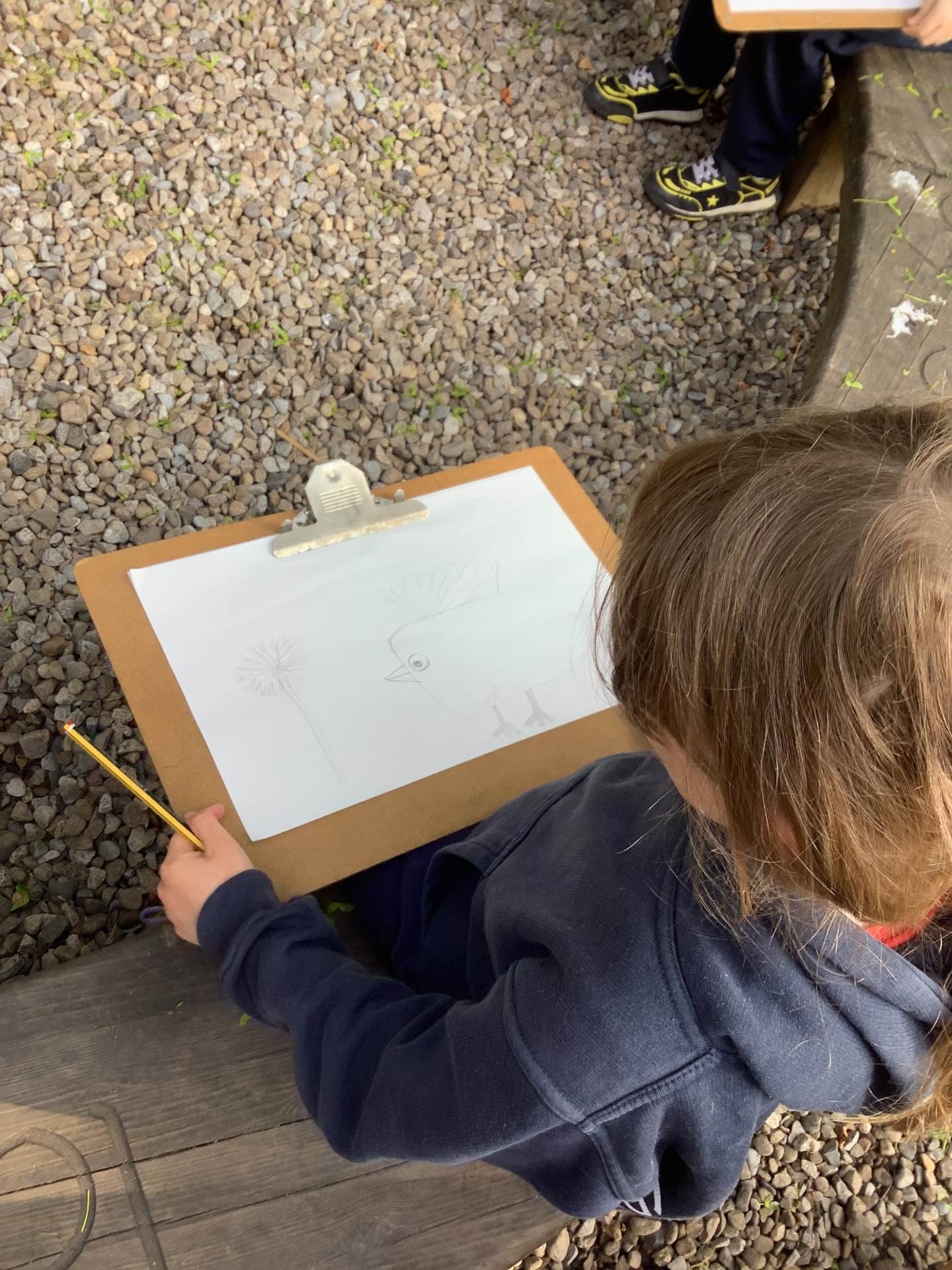 As part of this week's Wellbeing Wednesday group, Mrs Hewison took a group of children into the garden. Using their senses, they began by closing their eyes, discussing what they could hear and smell. They were able to spot signs of Spring and identified a range of new flowering plants. Children then drew what they could see.