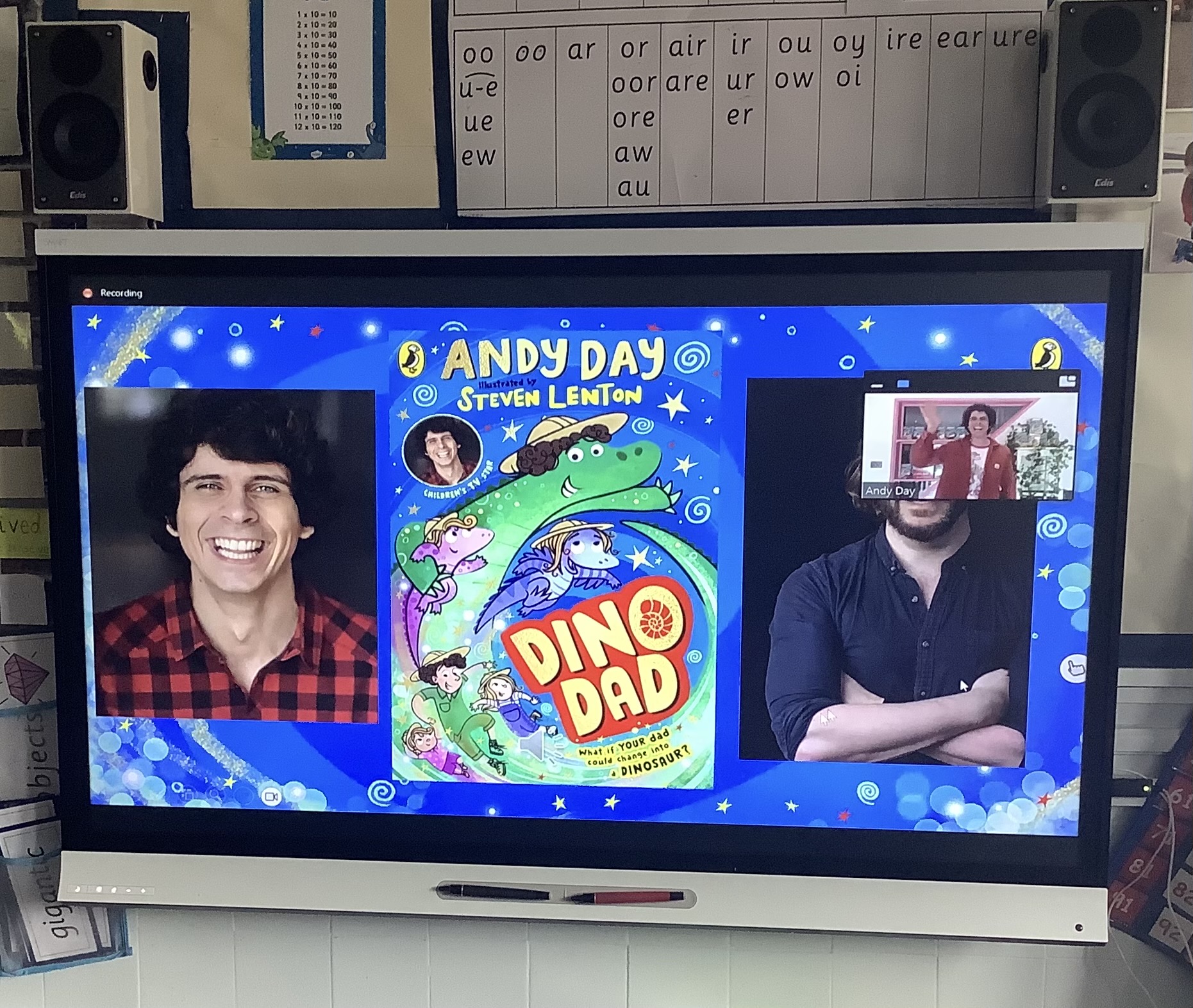 On Friday morning, Year 2 were very excited to welcome famous author Andy Day and illustrator Steven Lenton into their classrooms via Zoom. Whilst on the call, children followed instructions to draw their own ‘Dino Dad’ character. We had some very enthusiastic dancing as part of one of the challenges! Great work Carnivores and Herbivores!