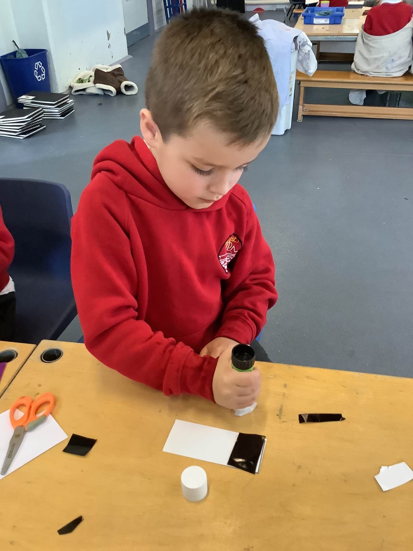 The children used clay to mould and shape their own boat which was accompanied by a flag they had created with their own choice of colours and shapes.