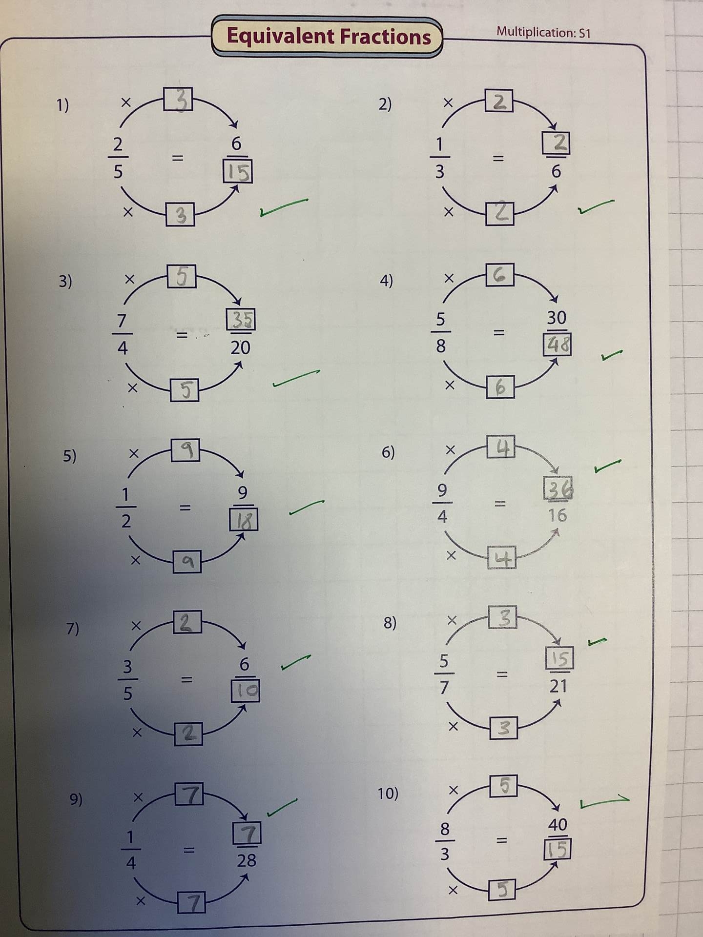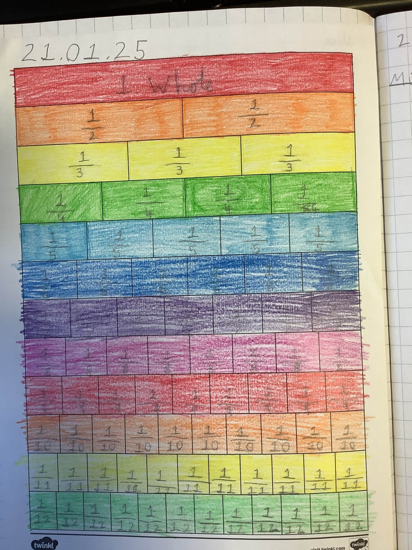In Year 4 we have started our fractions topic. We understand that a fraction is part of a whole and have learnt how to find fractions of shapes. Today we focused on equivalent fractions. We focused on a method which helped us to use multiplication and division to create equivalent fractions.