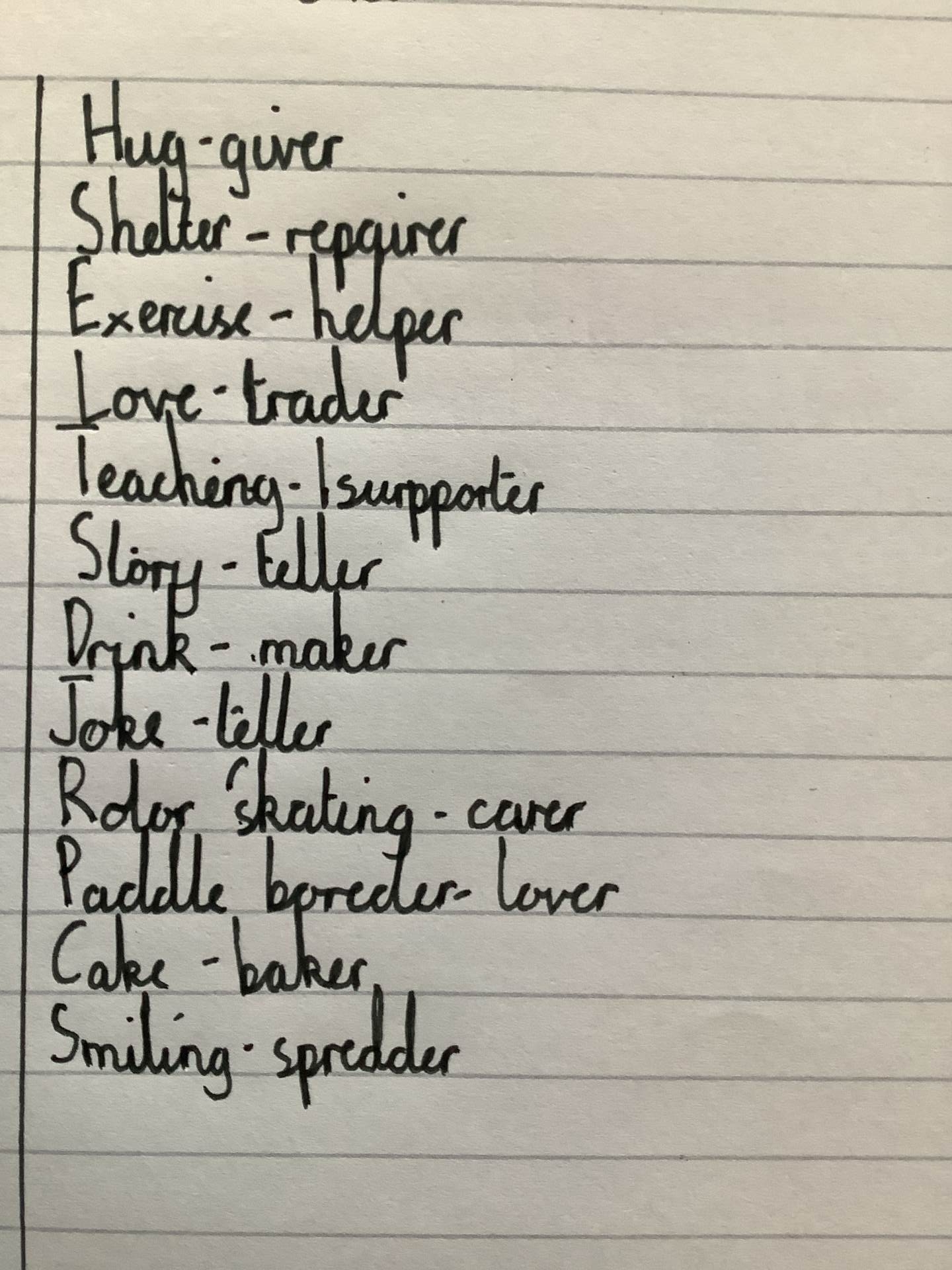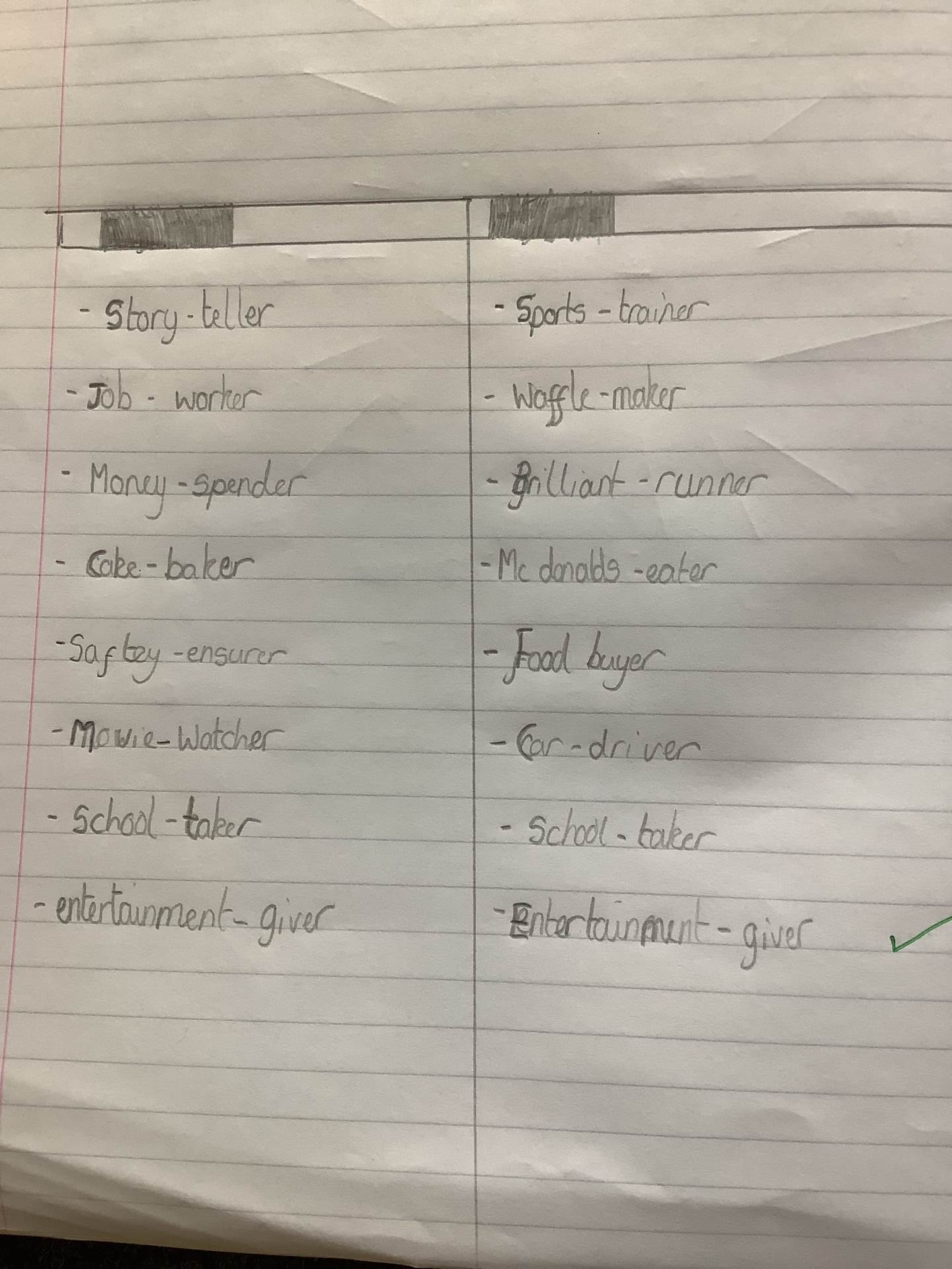 This week, Year 4 learnt how to write a kenning. We investigated the origin of kennings before writing one about ourselves. Everybody followed the rule of ‘noun, hyphen, verb’ to create excellent kennings. Finally, inspired by our Take One Picture, we wrote a kenning about a caregiver. In the poems, the children were able to reflect upon what they are thankful for in their daily lives and how their caregivers support them.